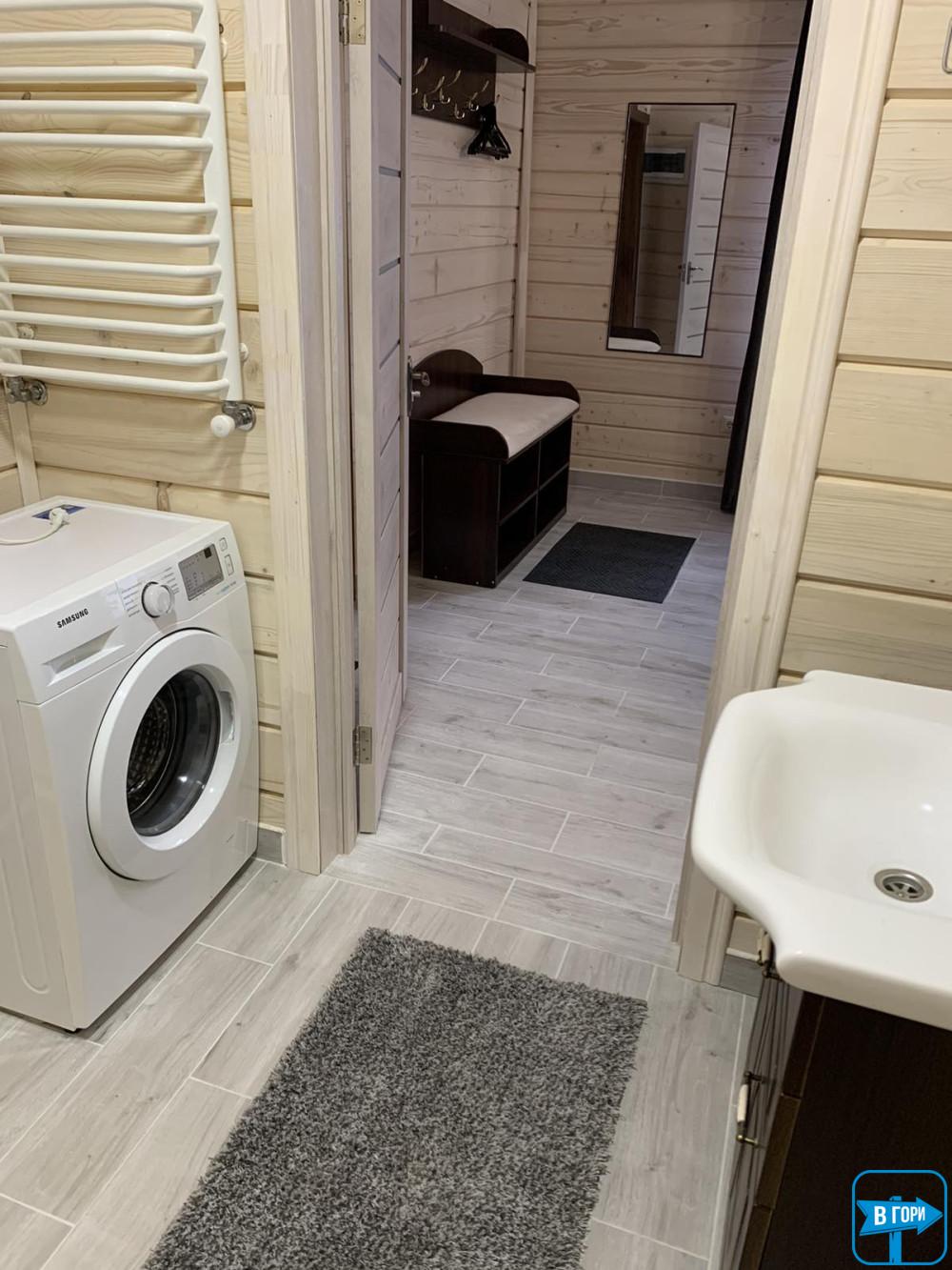 Надзвичайний комфорт відчувається, насамперед, завдяки оточенню дерева – воно скрізь: дерев'яні підлоги, стіни, стеля, сходи, навіть масивна кована люстра теж виконана з елементами дуба.