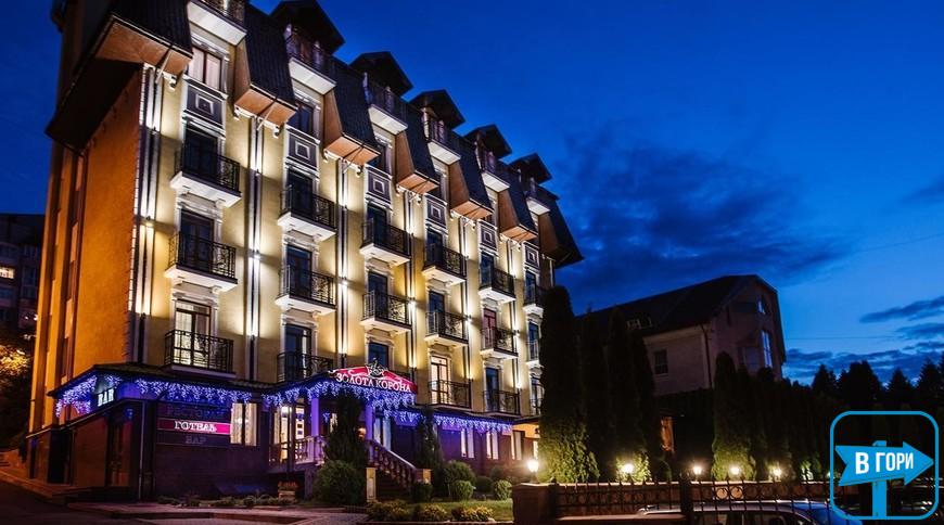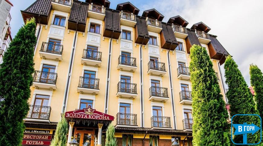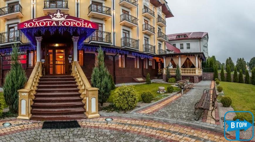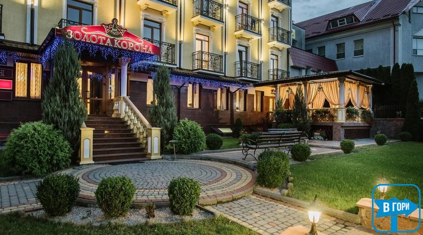 У ресторані з літньою терасою готелю "Корона" подають страви італійської та української кухні. У барі пропонують прохолодні напої та коктейлі.