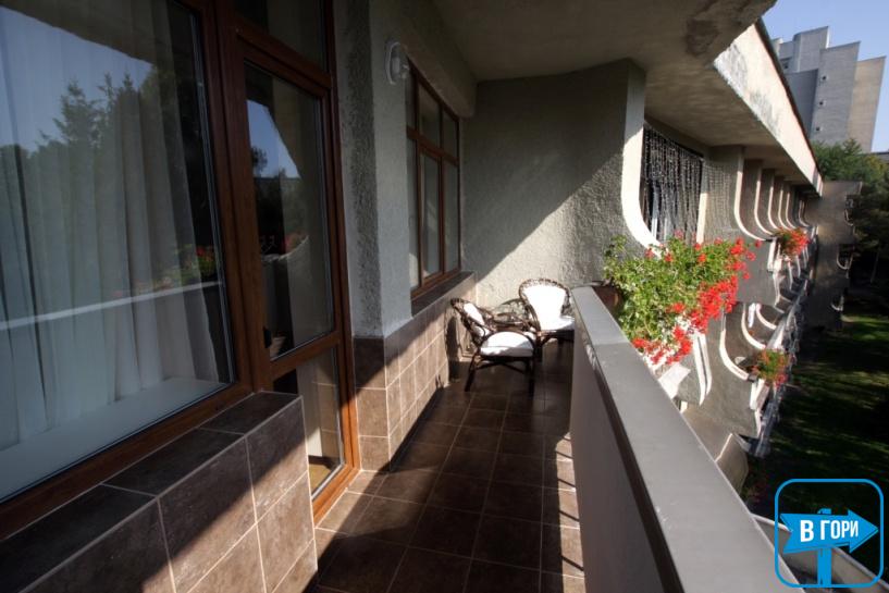 Великий балкон з кріслами та столиком.