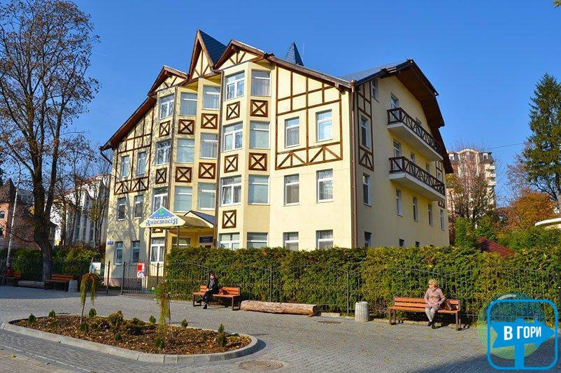 Курортний готель "Вілла Анастасія" розташований у місті Трускавець. З вікон відкривається вид на місто.