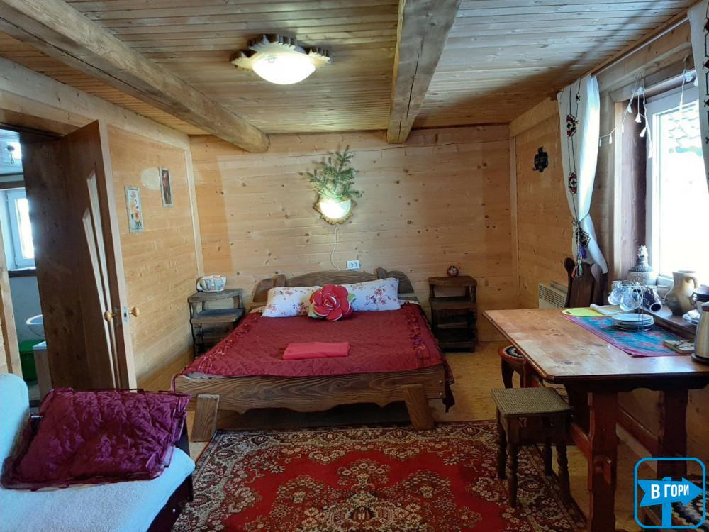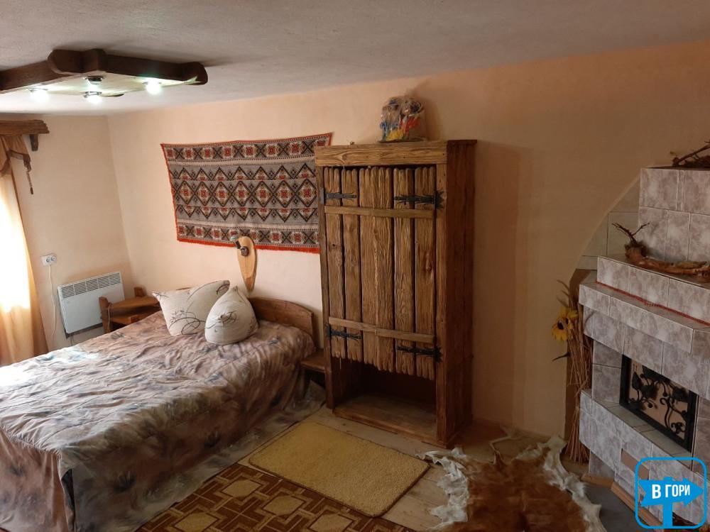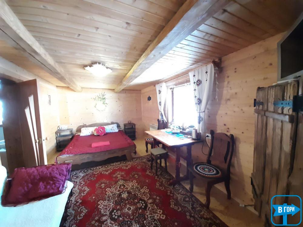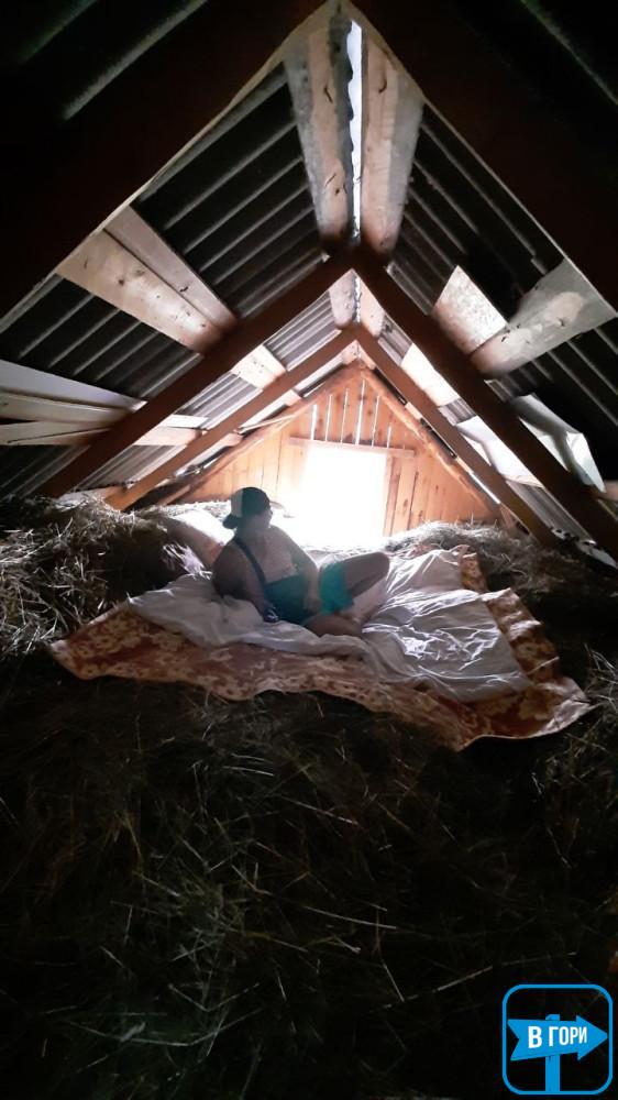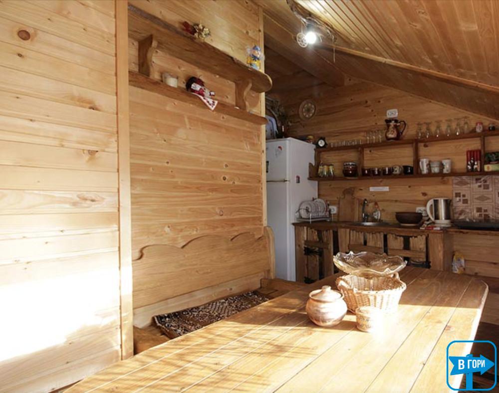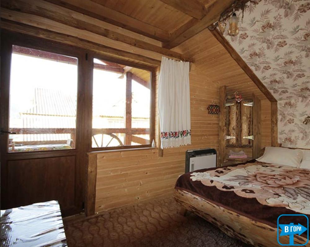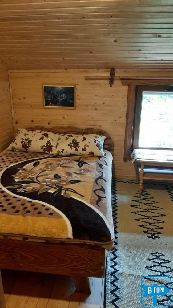 На другому поверсі (окремий вхід з двору) — кухня (холодильник, індукційна плита, електрочайник, мийка, посуд), 2 двомісні номери, 1 тримісний номер, кімната з сіном, санвузол.