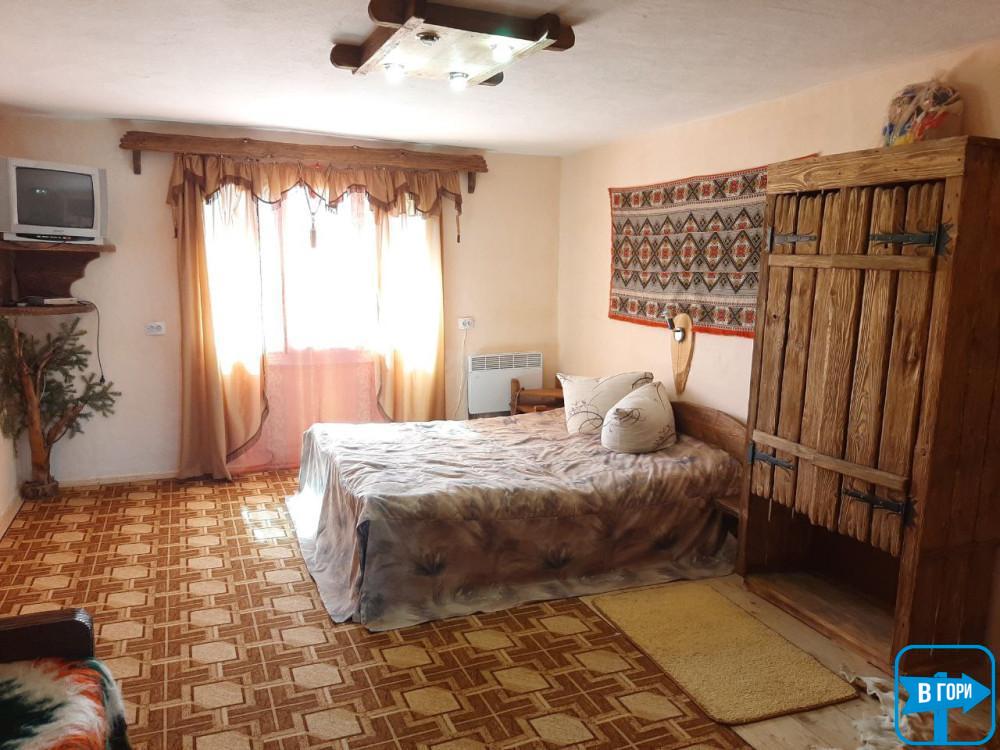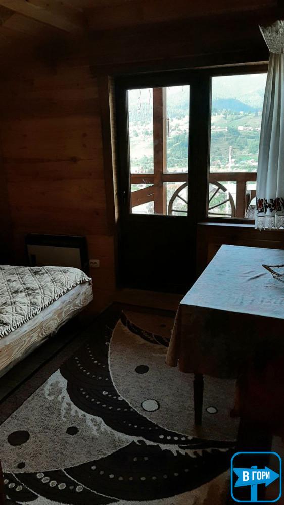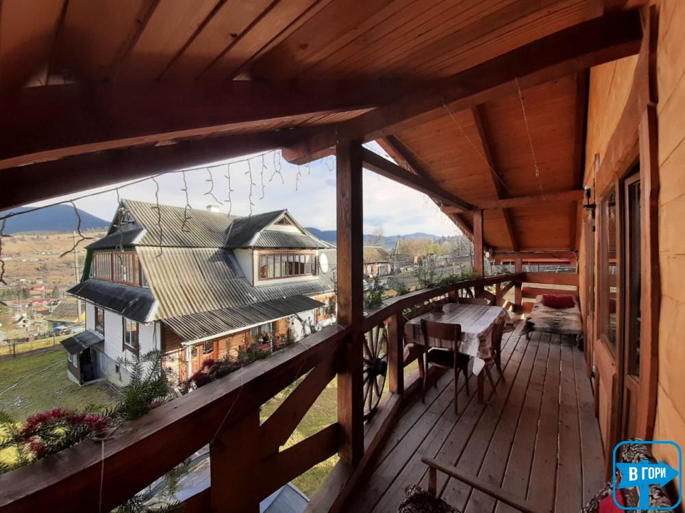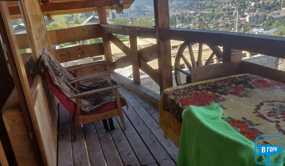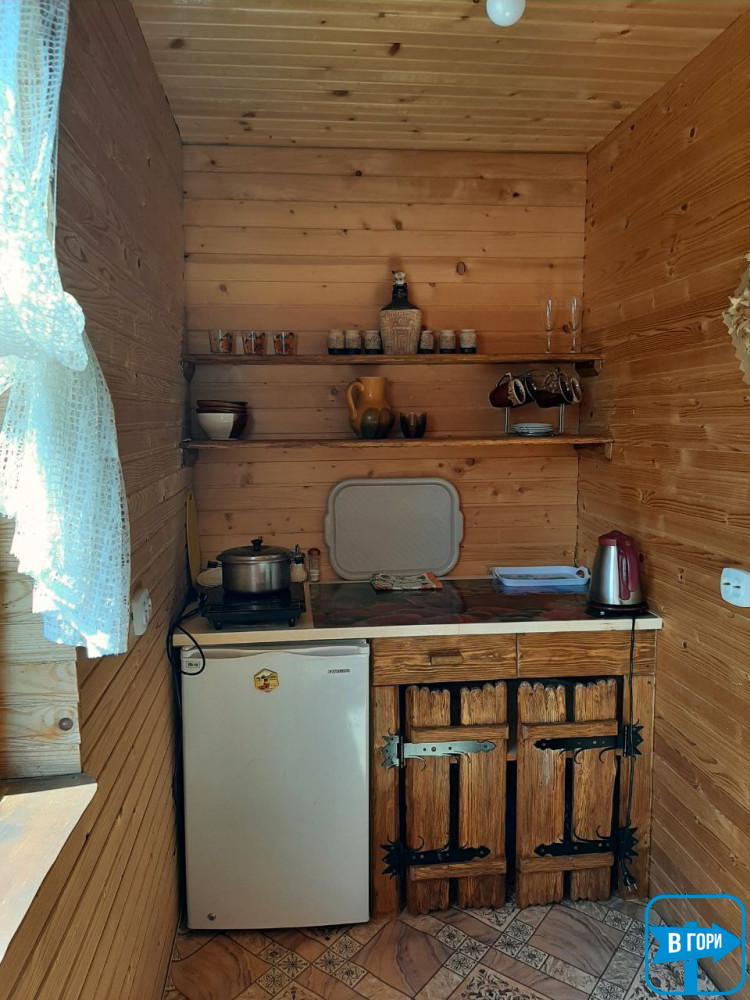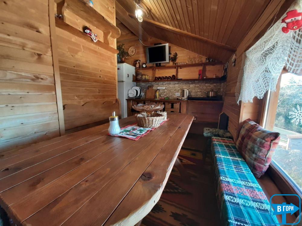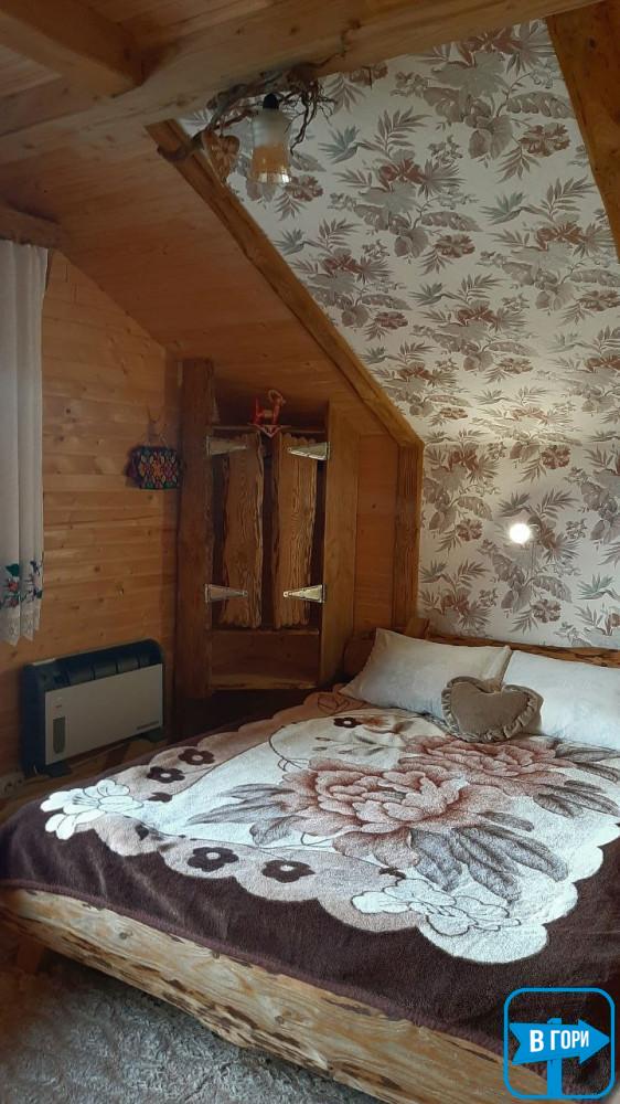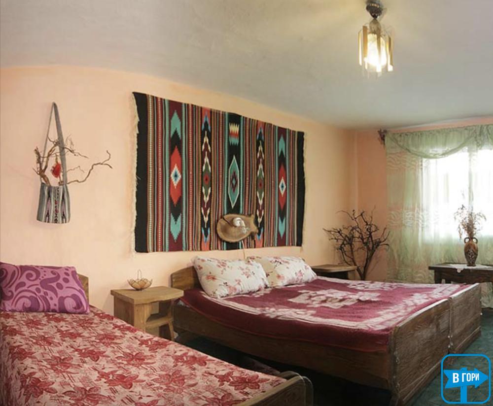 На другому поверсі (окремий вхід з двору) — кухня (холодильник, індукційна плита, електрочайник, мийка, посуд), 2 двомісні номери, 1 тримісний номер, кімната з сіном, санвузол.
