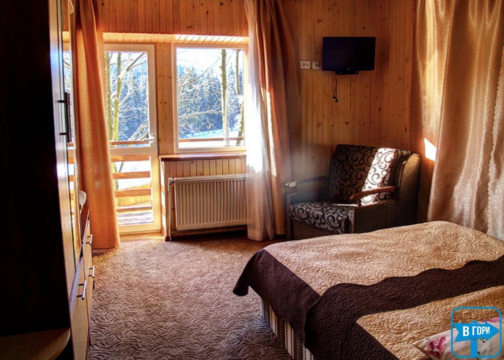 3 двомісні номери (у кожному є двоспальне ліжко, шафа для одягу, телевізор, у двох номерах є додаткове місце — розкладне крісло; санвузол — душова кабіна, туалет, умивальник).
