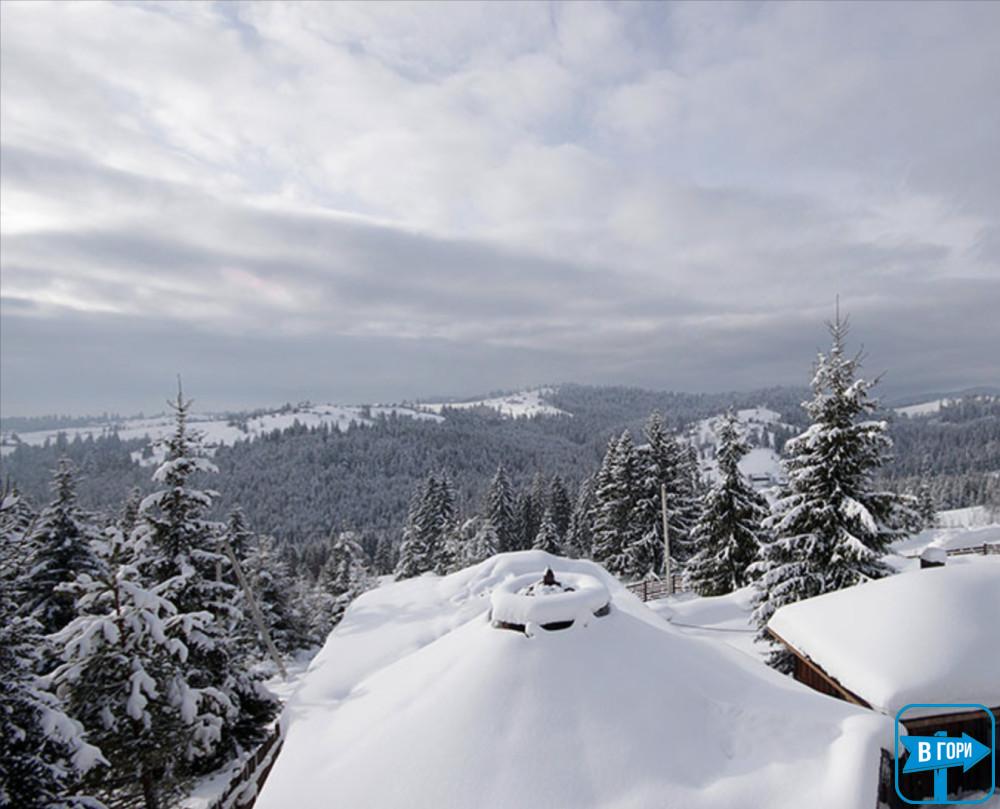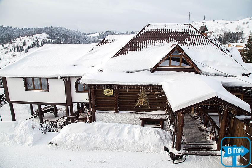 У селі Яблуниця, 10 км до відомого гірськолижного курорту "Буковель", на висоті 1100 м над рівнем моря.