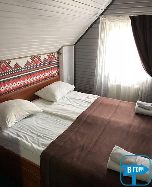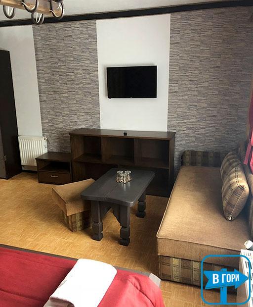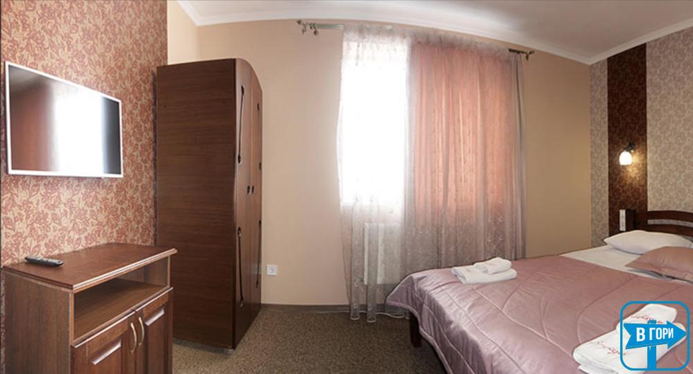 У кожному номері — двоспальне ліжко, м'який куток (додаткове місце), телевізор, санвузол (туалет, душ, умивальник).