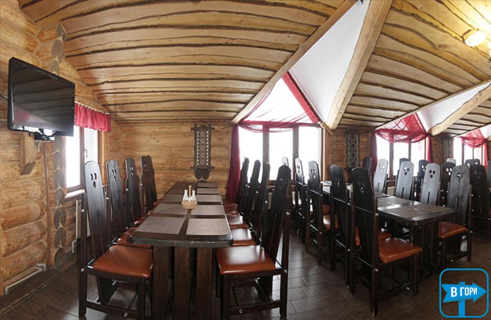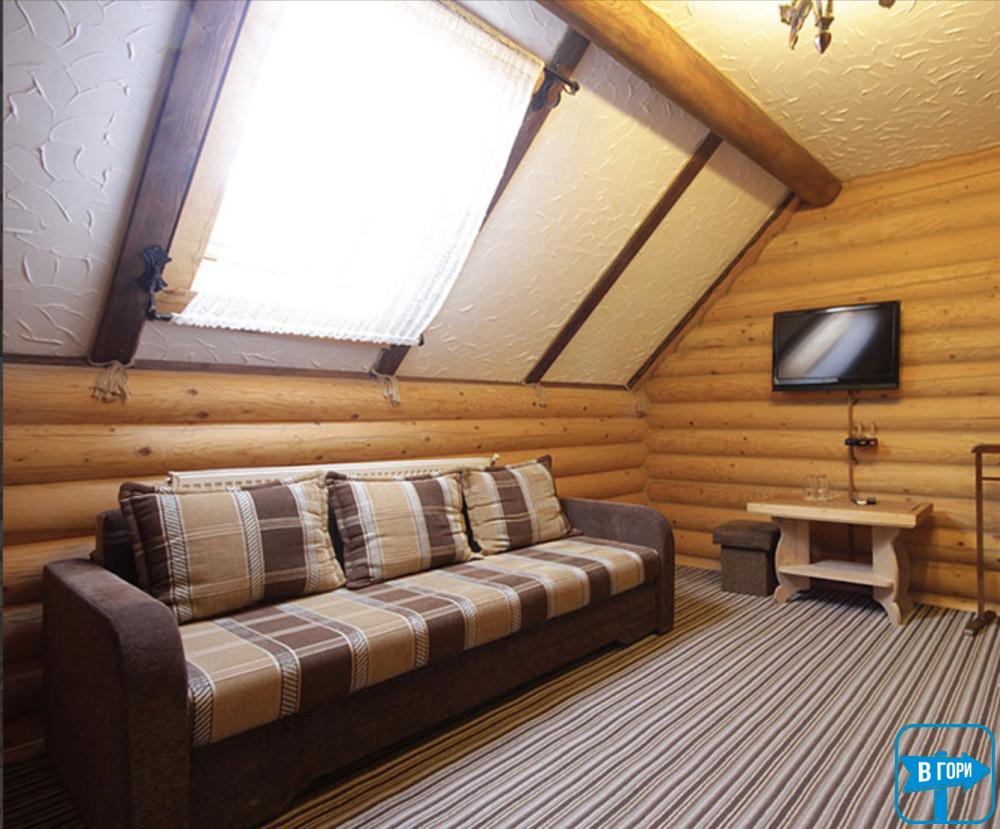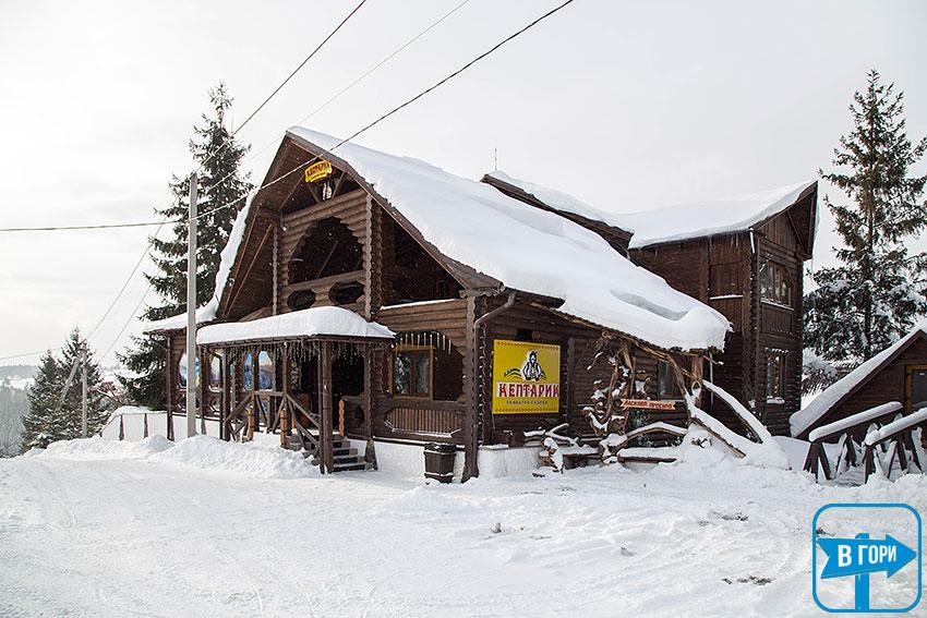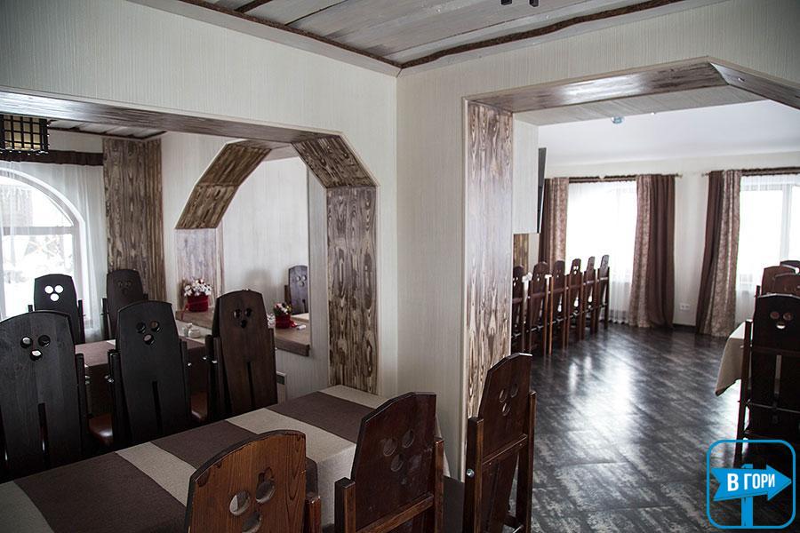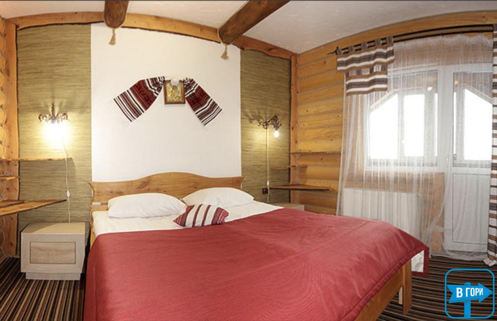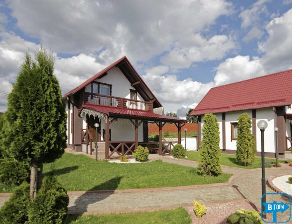 - Триповерховий дерев'яний котедж на 17 номерів (до 60 місць),