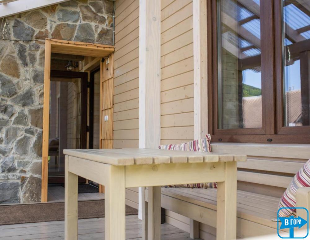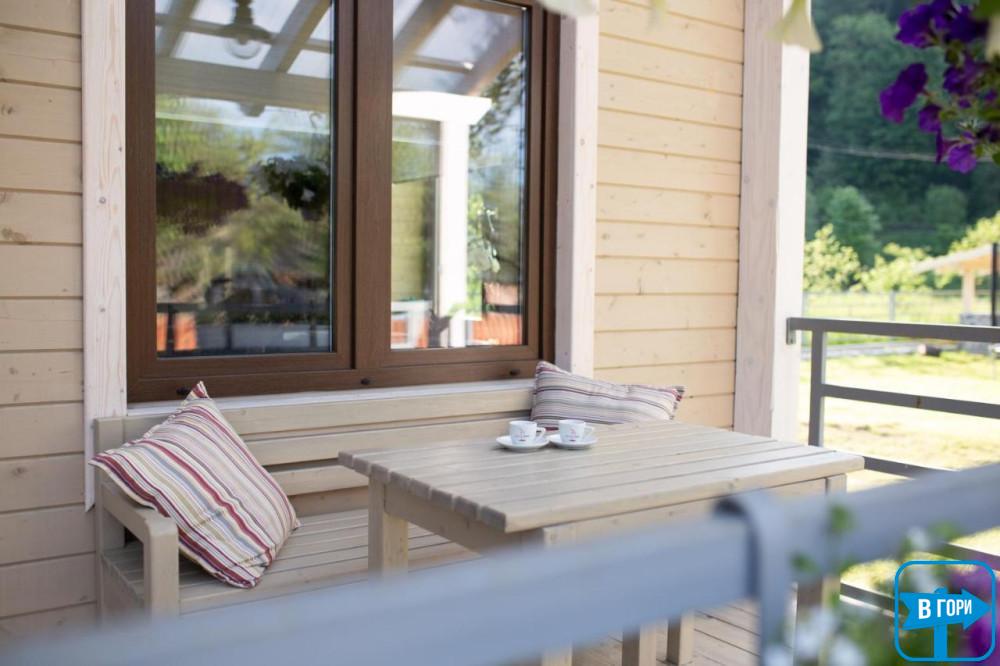 До послуг гостей тераса. З вікон відкривається вид на сад.
