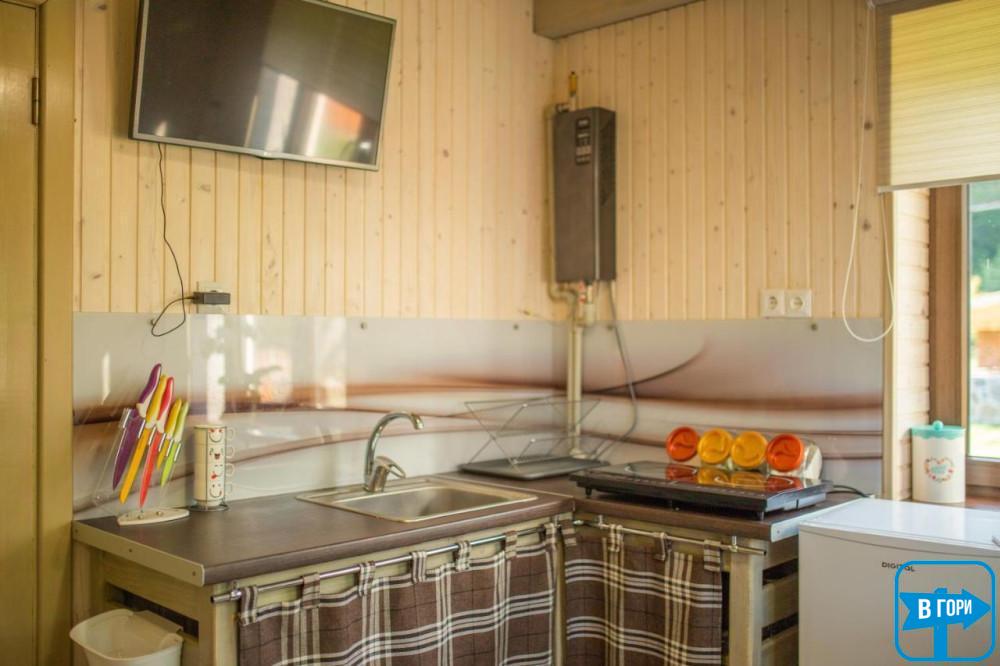 - міні-кухня з холодильником і плитою,