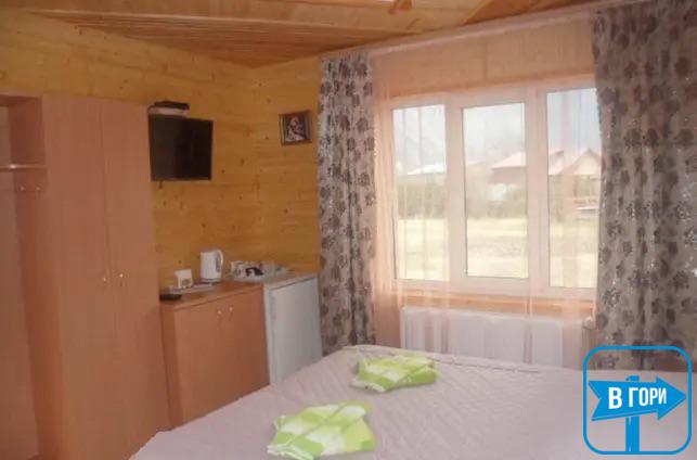 Другий поверх: На другому поверсі розташовані два дворівневі люкси, кожен з яких має свій власний вхід ззовні. На першому рівні кожного люксу знаходиться затишна спальня з двоспальним ліжком, шафою для одягу, холодильником, електрочайником, столом зі стільцями, телевізором, балконом і санвузолом з усіма необхідними зручностями. На другому рівні - додатковий простір для відпочинку з ще одним двоспальним ліжком, телевізором та балконом, а також окремий санвузол.