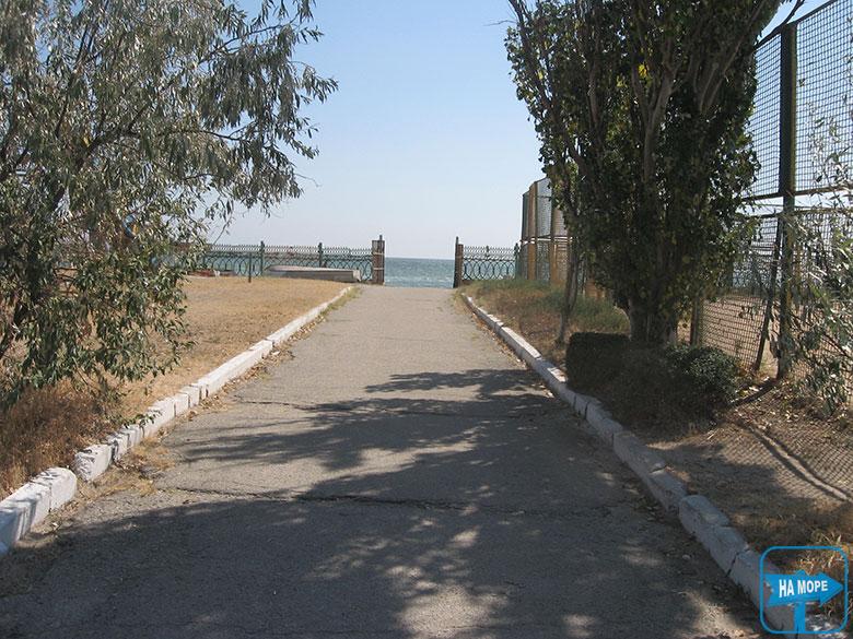 Пляж власний, є тіньові навіси, захід у море в центрі пологої бази, зручний, по краях сходинки, на глибину приблизно 2 м. Глибина моря біля берега невелика, зручна для купання дітей, що добре прогрівається сонцем. Хороша для плавання глибина починається за 20-30 м від берега.