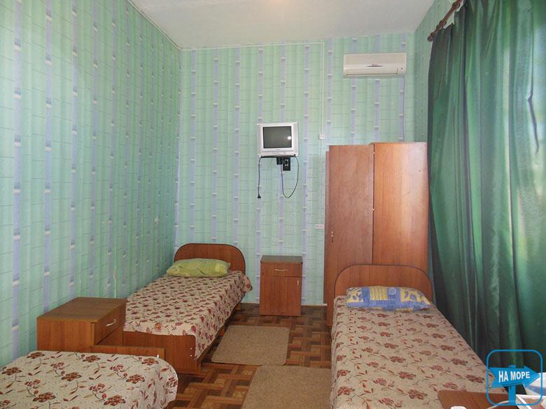 Котедж-стандарт. Кімнати на 3 місця – від 250 грн. з однієї людини на добу. У кімнатах нові меблі, холодильник, телевізор, кондиціонер. Зручності на кожну кімнату, на спільній веранді - 2 санвузли, 2 умивальники, 2 душі з гарячою водою.