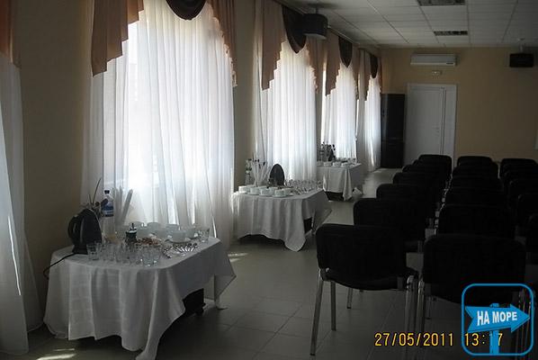 власний піщаний пляж, прокат катамарана, басейн, рятувальна служба, медпункт, майданчик для дітей, спортивний майданчик, комп'ютерний клуб. Також є кінозал, професійний конференц-зал на 100 місць із сучасним мультимедійним обладнанням, кафе, із зоною «Шоу-гриль», автомобільна стоянка. На базі відпочинку постійно проводяться різноманітні розважальні заходи та тематичні вечірки.