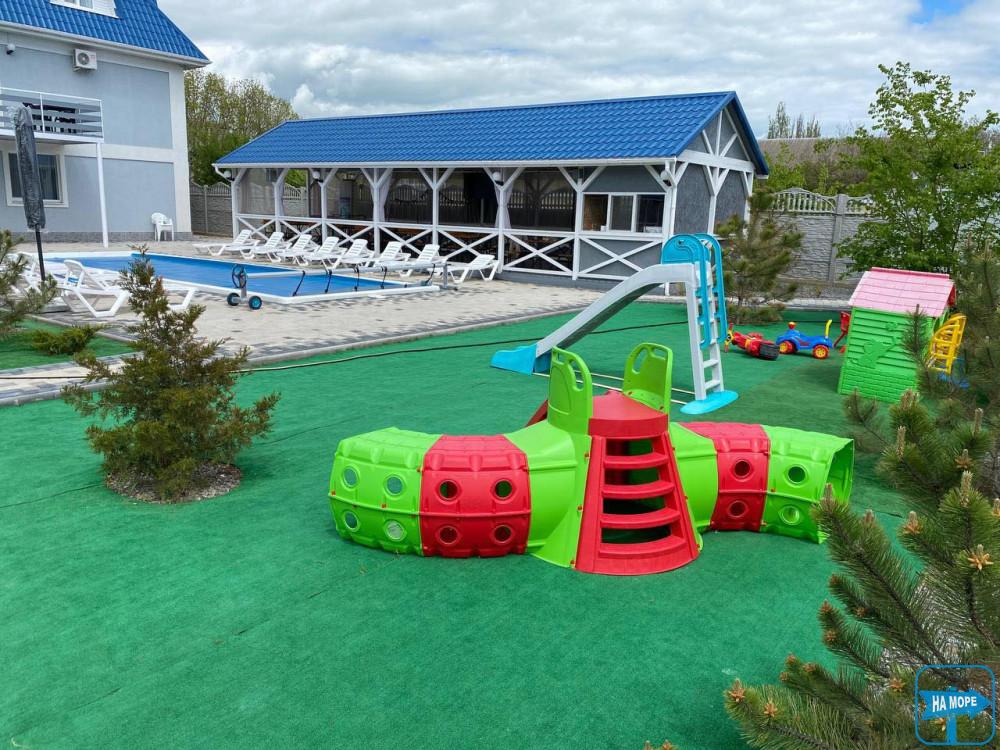 На території знаходиться дитячий майданчик, батут, парковка для авто під відео спостереженням, альтанки для відпочинку та їди, велика альтанка з кухнею, басейн з підігрівом, мангальна зона.