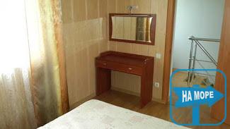 у другій - двоспальне ліжко, тумби і туалетний столик зі стільцем.