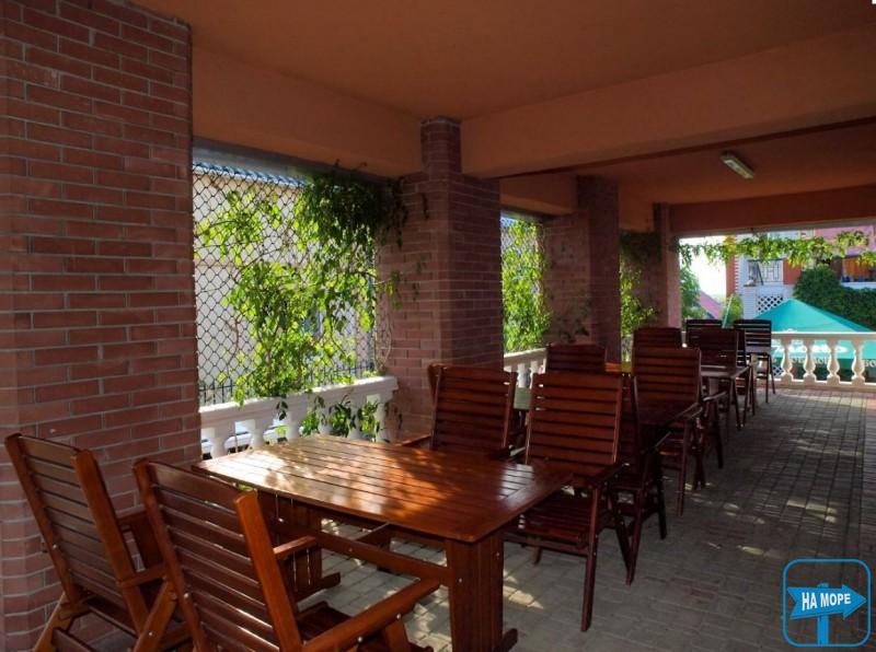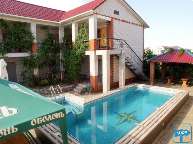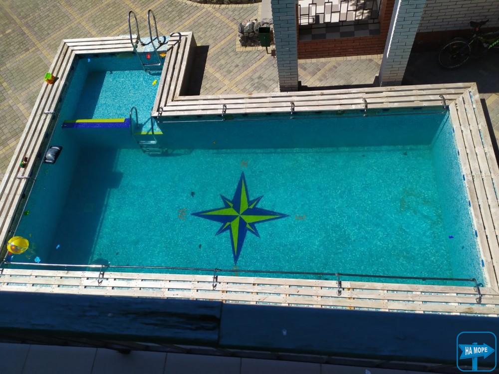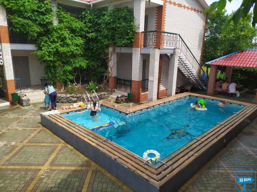 Пансіонат обладнаний власним капітальним басейном (9,5*4,5 метра та дитячою зоною 2*3 метри) з прісною водою та російською лазнею