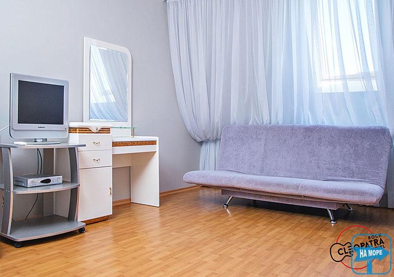 3-місні «VIP» з балконом та «Люкс»: у номері двоспальне ліжко «king size», розкладний диван, вбудована шафа-купе, телевізор, трюмо з великим дзеркалом, кондиціонер, холодильник, санвузол, душова кабіна.
