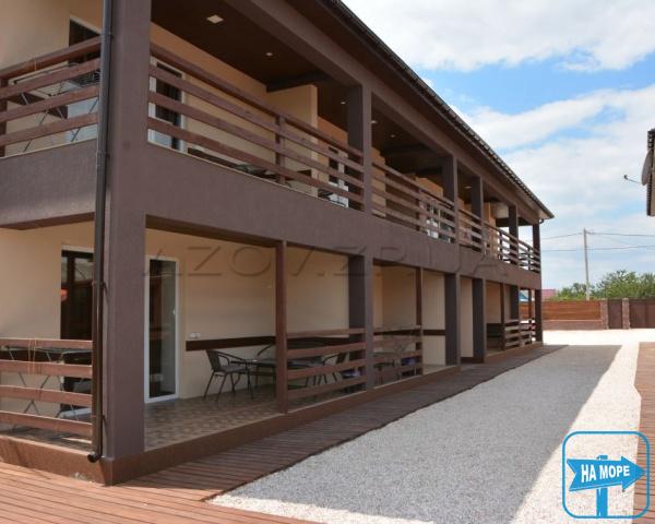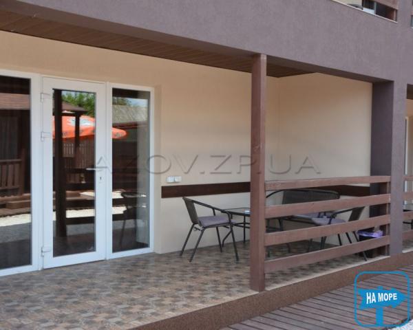 Двір покритий піском та галькою. На першому поверсі корпусів – веранди зі столиками. Є дитячий майданчик з пісочницею та гойдалками.