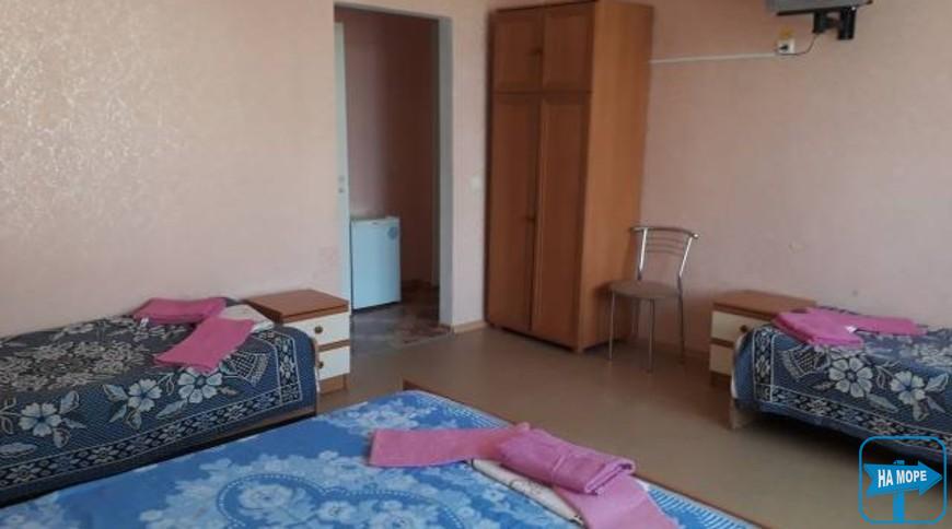 Триповерховий корпус бази розрахований на 100 відпочиваючих. Для Вашого комфортного відпочинку ми пропонуємо 2-х та 4-х місні номери з усіма зручностями. Кожен номер обставлений меблями, окремий санвузол (душ. кабіна), телевізор, холодильник, кондиціонер. Існує WI-FI зона. Холодна та гаряча вода цілодобово. Також у номерах є відкритий човен з місцем для відпочинку та чудовим краєвидом на море, або на територію бази. Будівля розташована серед великої кількості дерев, у тому числі хвойних, що створює унікальне поєднання цілющості морського бризу та приємного хвойного аромату.