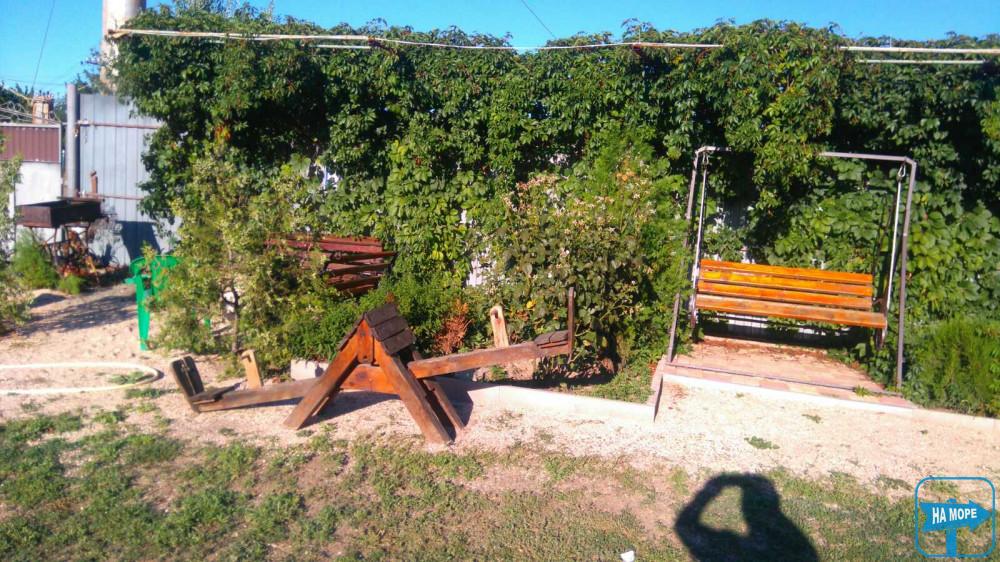 є дитячий майданчик мангал гойдалки.