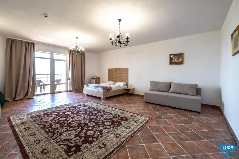 Затишний номер классу «Покращений» з диваном, балконом, загальною площею ~30 кв.м, з видом видом на море та озеленену паркову зону.