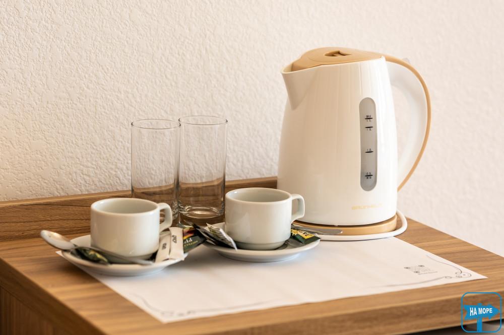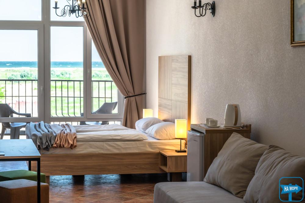 З номерів відкривається чудовий краєвид як на Азовське море, так і на озеро Сиваш. Ви зможете насолоджуватися прекрасним краєвидом та чистим морським повітрям за чашкою ароматного кофе, не виходячи з номера!
