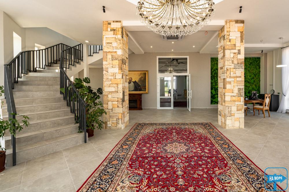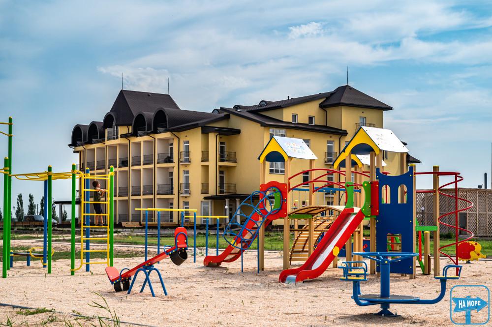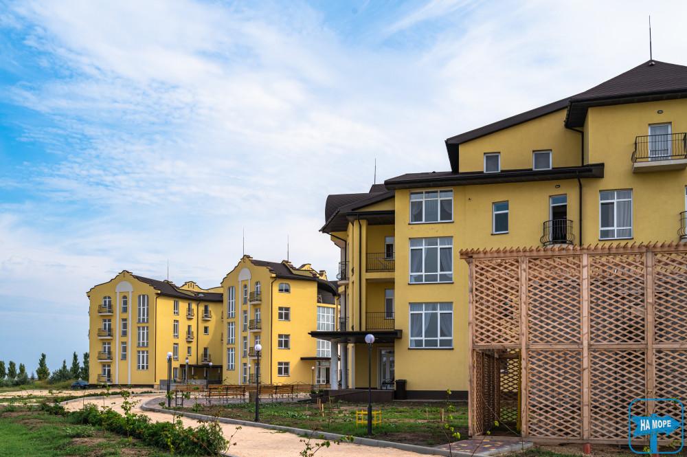 Комплекс складається зі спального корпусу, їдальні та затишного кафе. Спальний корпус є чотириповерховим будинком, розташованим на березі Азовського моря в 70 метрах від моря (перша берегова лінія). Розкішний інтер'єр корпусу виконаний у найкращих традиціях європейського стилю. Ми пропонуємо Вам насолодитися елітним відпочинком у затишних, нестандартних номерах зі всіма зручностями, розрахованими на поселення від двох до чотирьох осіб. У номерах є окремий санвузол з ванною, комфортна меблі, холодильник, чайник, фен, телевізор (кабельне телебачення), безкоштовний Wi-Fi інтернет в кожному номері.