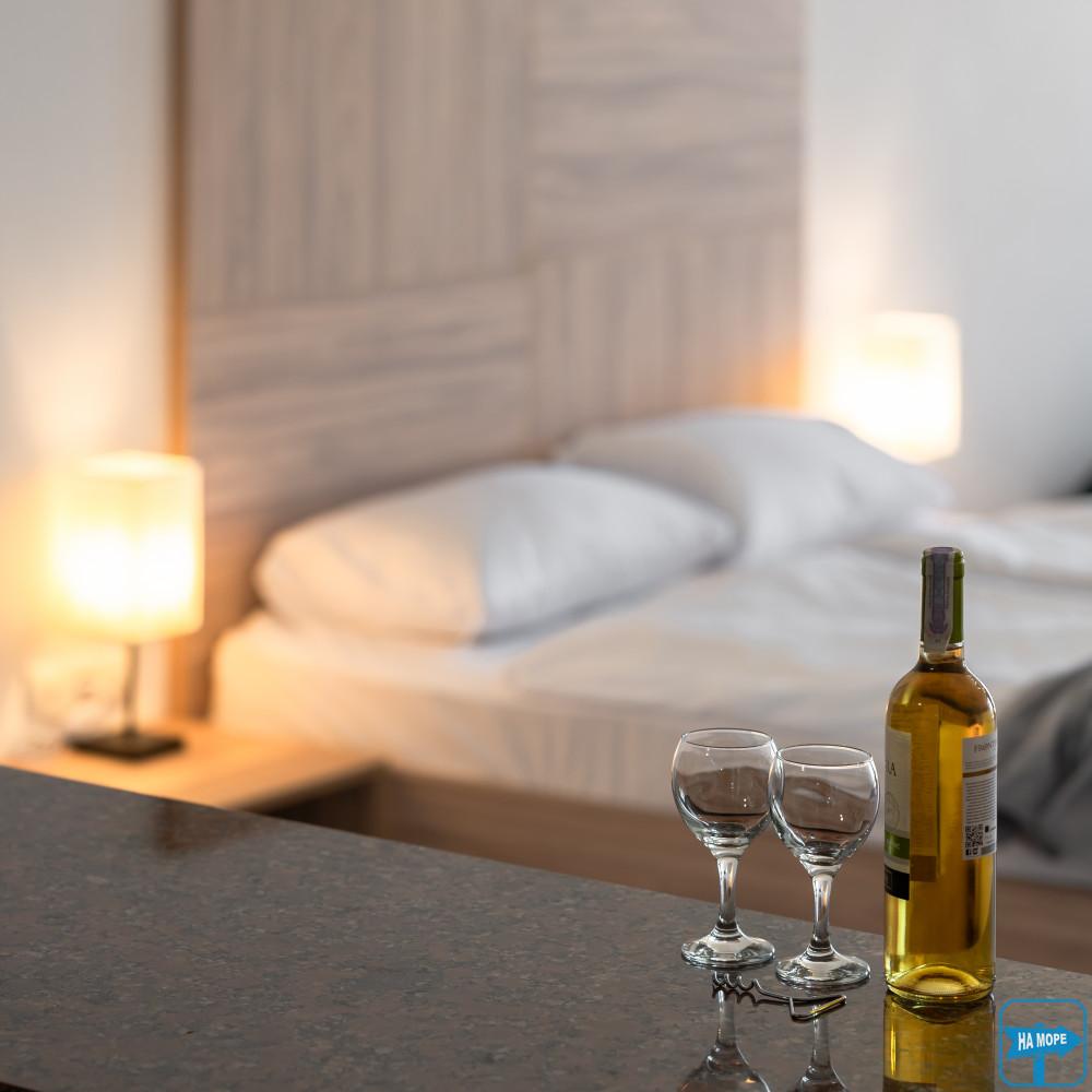 В номері: 2-х спальне ліжко, 2 приліжкові тумби, шафа, столик, холодильник, телевізор з кабельним телебаченням, безкоштовний Wi-Fi.