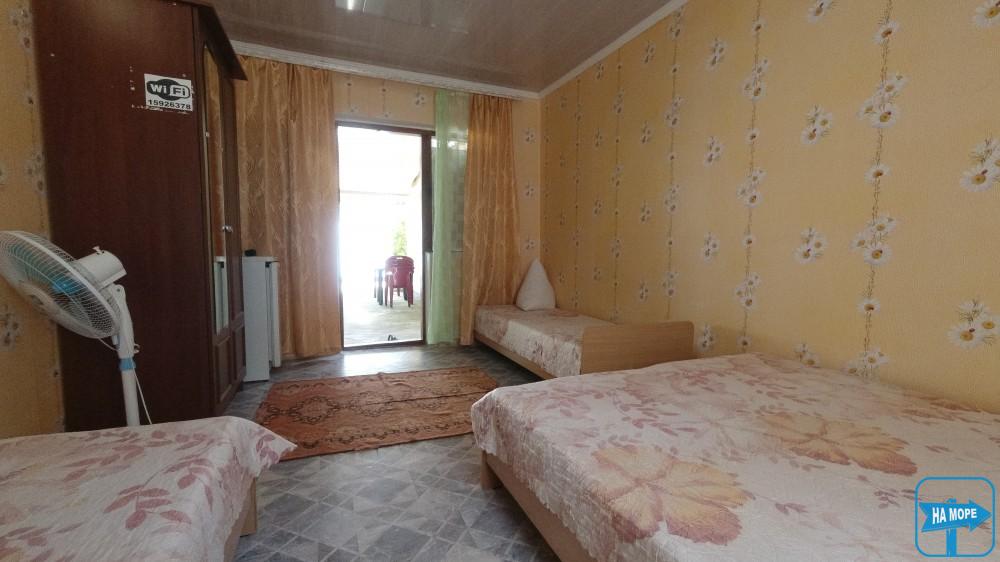Номери представлені 2-3-4-5 місними кімнатами, а також окремим будинком (цілком) для великих компаній. У номерах сучасні меблі та необхідне приладдя. Видається комплект посуду. Санітарна загальна зона на території.