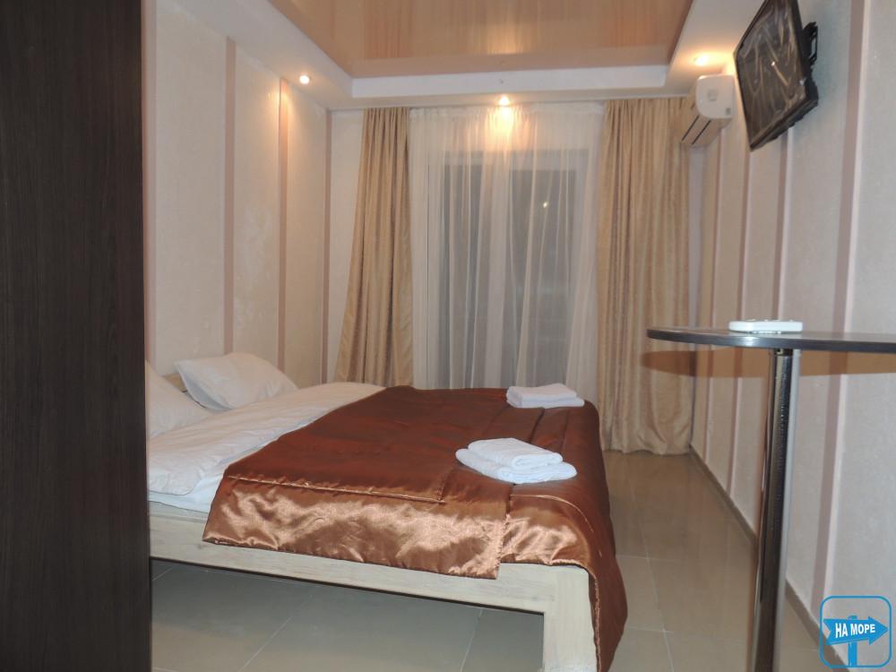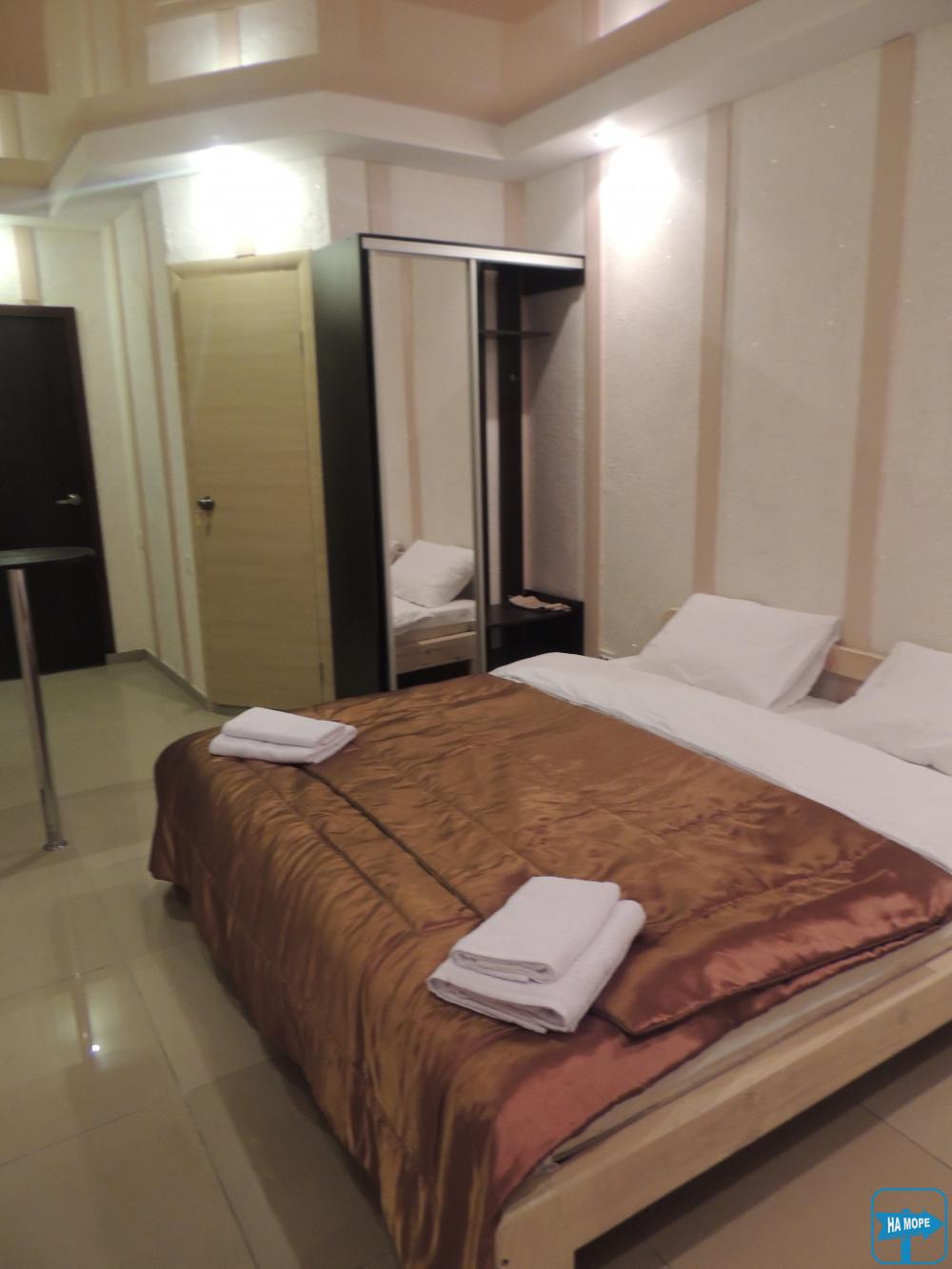 Комплектація номера: ліжко 2х спальне, плазмовий ТВ, міні-холодильник, шафа-купе, кондиціонер, санвузол з душем. комплект постільної білизни, що включає на кожну людину 2 рушники, WI-FI.