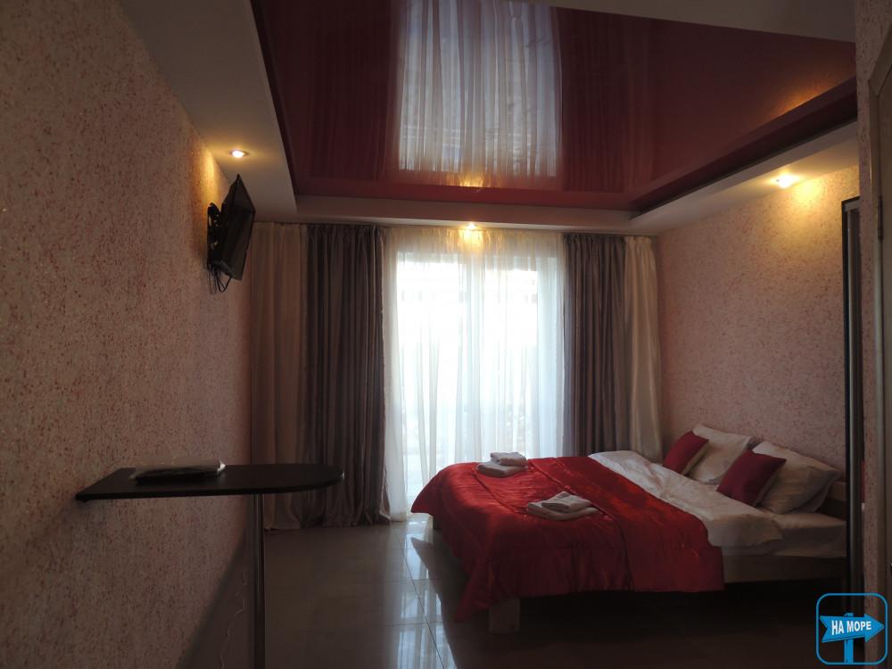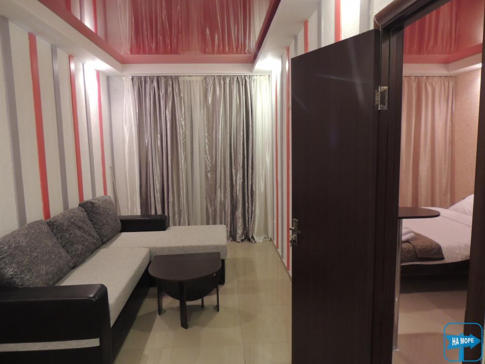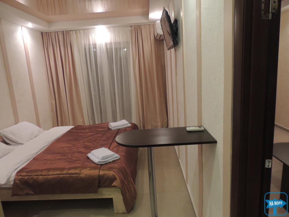 1я кімната - 2х спальне ліжко, телевізор, шафа-купе, кондиціонер, санвузол з душем., комплект білизни, включаючи полотна 2шт, для 2х осіб, чайний столик.