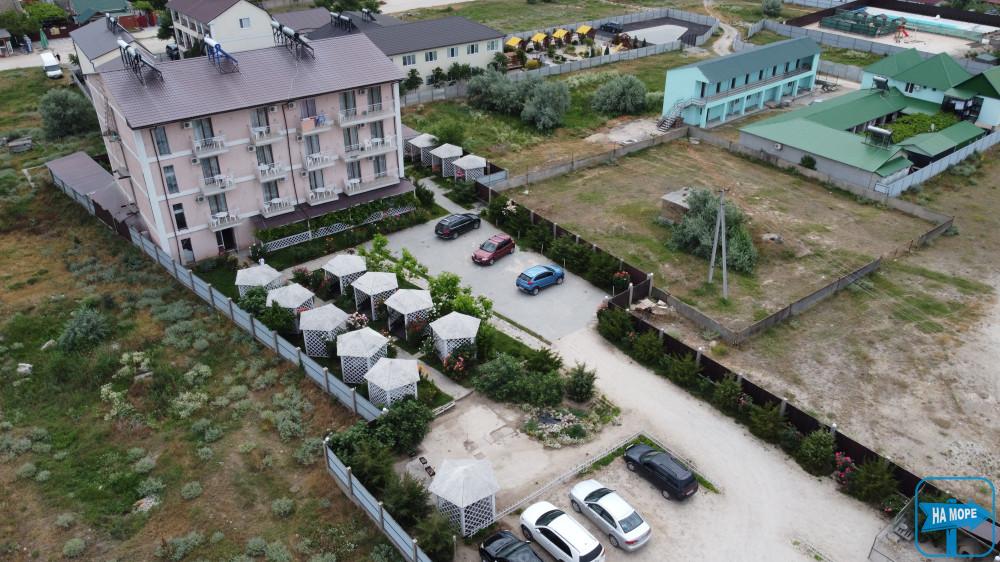 На Арабатській стрілці знаходиться Дельфінарій (від нашого готелю 10 км), а також аквапарк Оазіс (12 км) та зоопарк Сафарі (відстань 4км). До гарячого озера (гейзера) 5 км, до солоного озера 4 км, до моря від готелю 900 метрів, поряд з готелем знаходяться 3 продуктові міні маркету та кафе, відстань 100-150 метрів, до центрального ринку с. Щасливцеве від готелю 1 км 200 метрів. До найближчого супермаркету 1км 500 метрів
