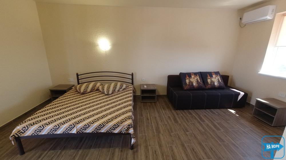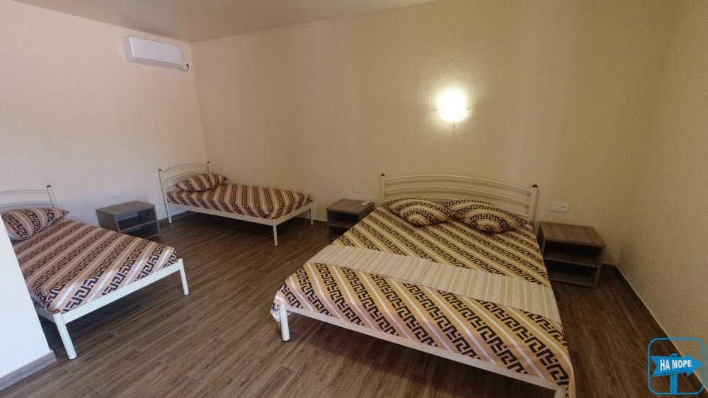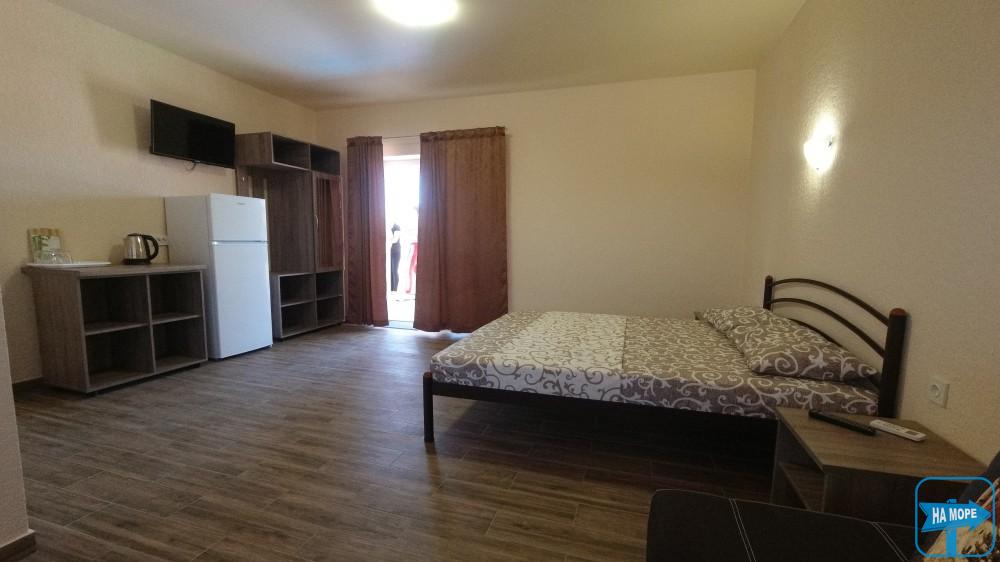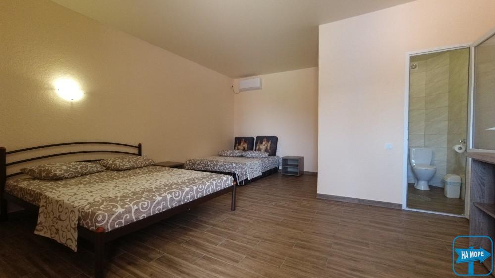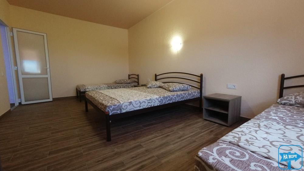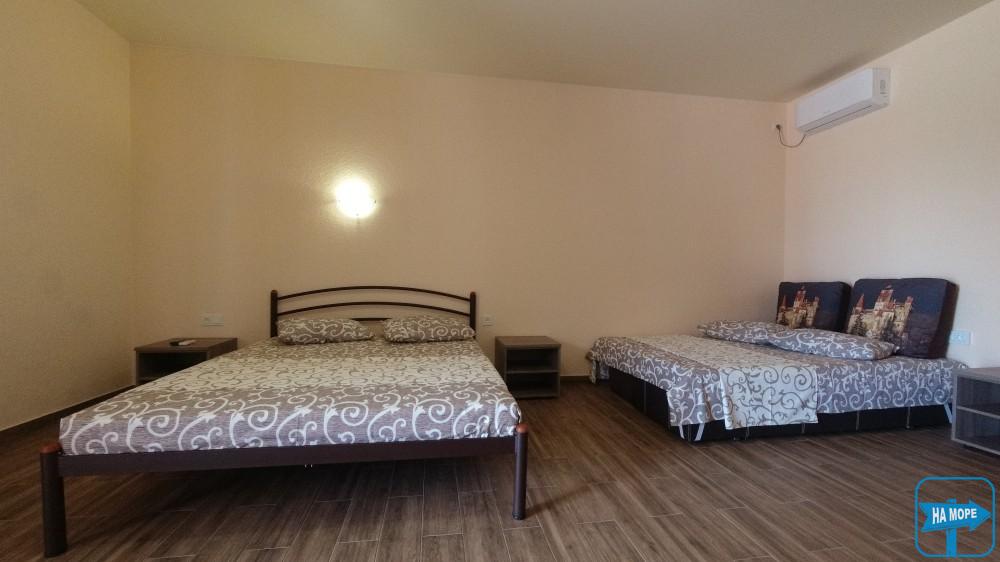 Ми розташовані на першій вулиці до моря (вулиця Набережна). Пропонуємо Вашій увазі комфортабельні та просторі однокімнатні номери, розраховані на поселення від 2х до 4х осіб, а також двокімнатні номери для розміщення 4-6 гостей та дворівневі апартаменти площею 170м2, які вміщують 6-7 гостей. Є номери з окремим входом та своєю затишною терасою зі столиком та стільцями, є номери з виходом балкона на басейн, з деяких номерів відкривається чудовий краєвид на море (2 та 3 поверх).