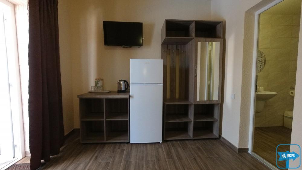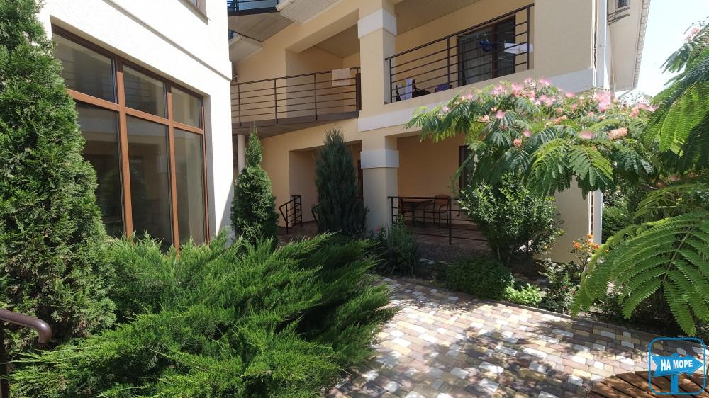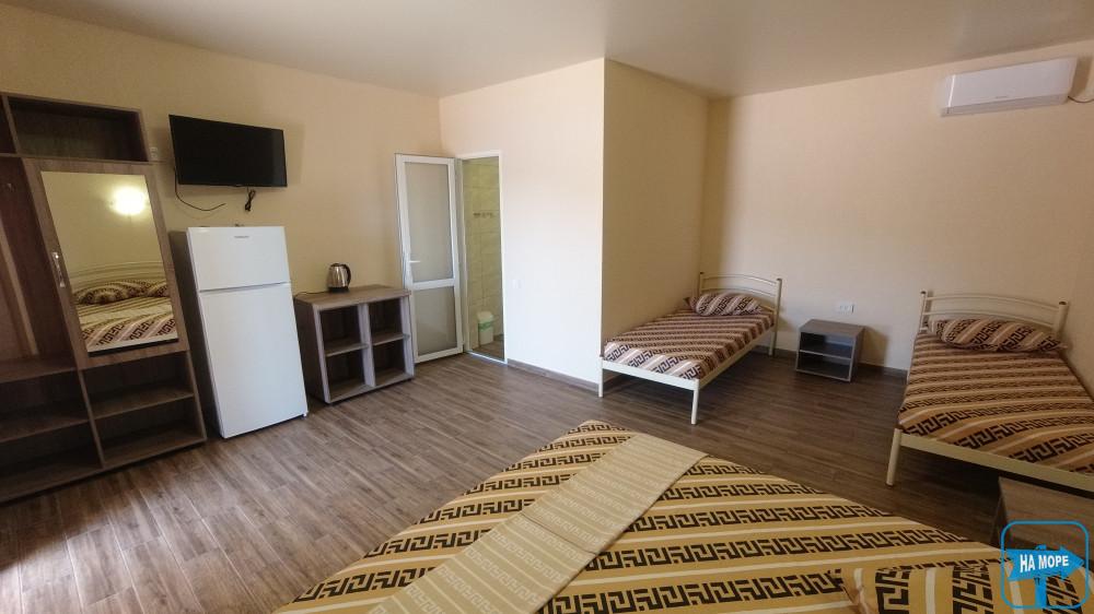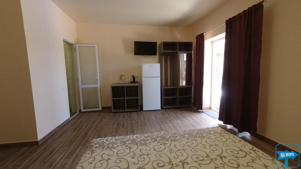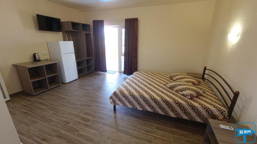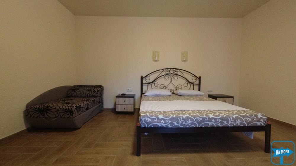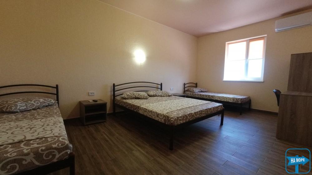 Ми розташовані на першій вулиці до моря (вулиця Набережна). Пропонуємо Вашій увазі комфортабельні та просторі однокімнатні номери, розраховані на поселення від 2х до 4х осіб, а також двокімнатні номери для розміщення 4-6 гостей та дворівневі апартаменти площею 170м2, які вміщують 6-7 гостей. Є номери з окремим входом та своєю затишною терасою зі столиком та стільцями, є номери з виходом балкона на басейн, з деяких номерів відкривається чудовий краєвид на море (2 та 3 поверх).