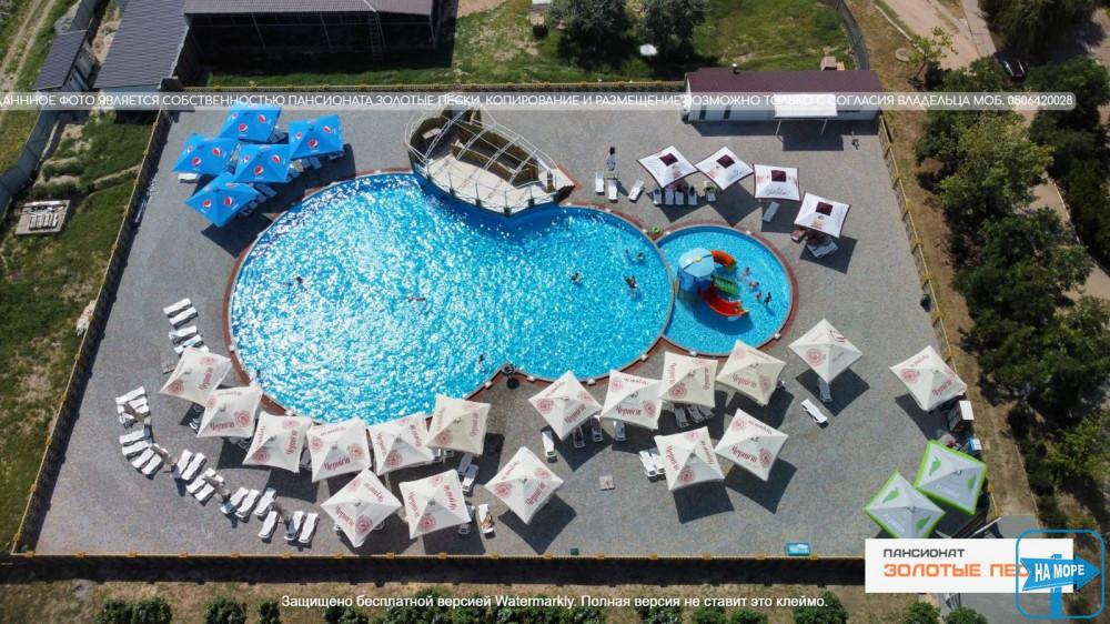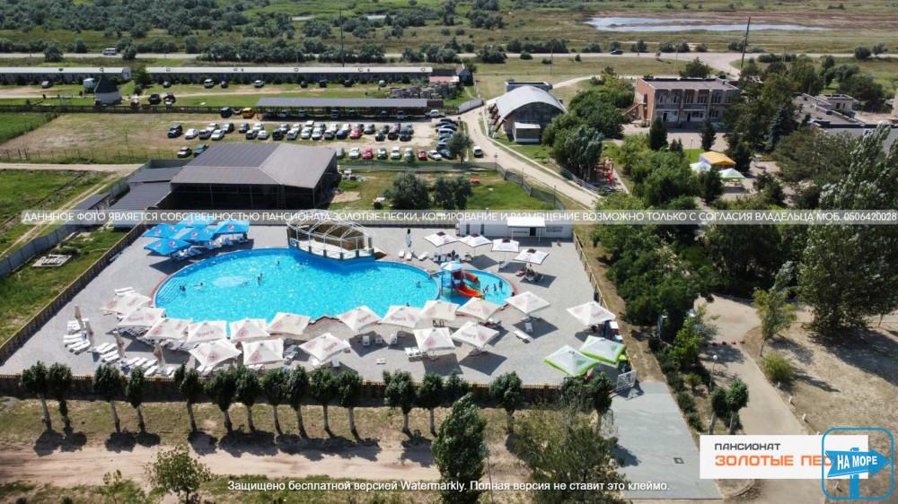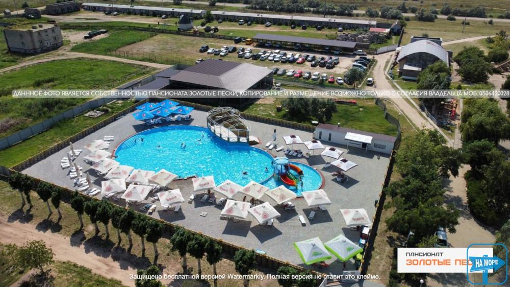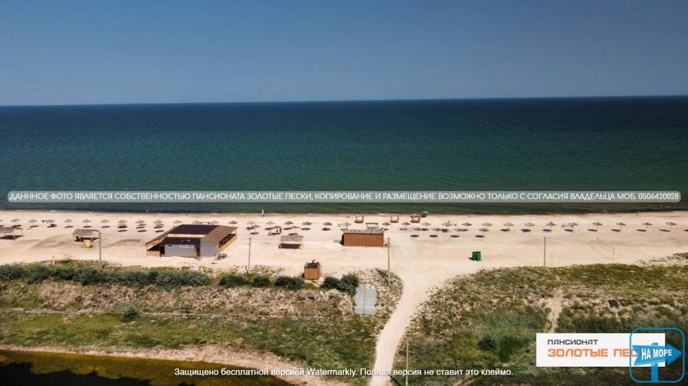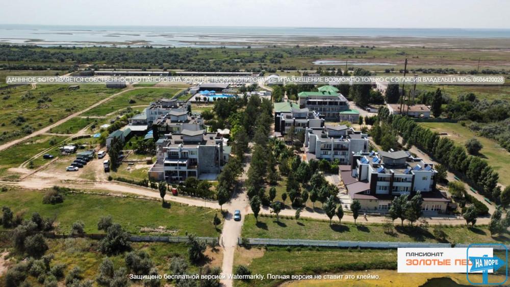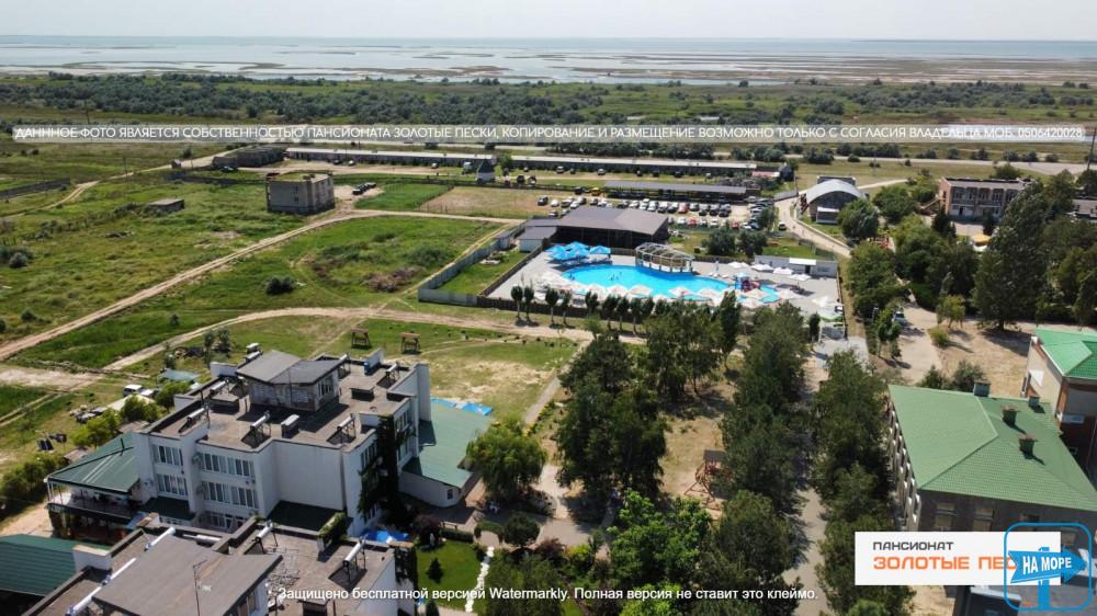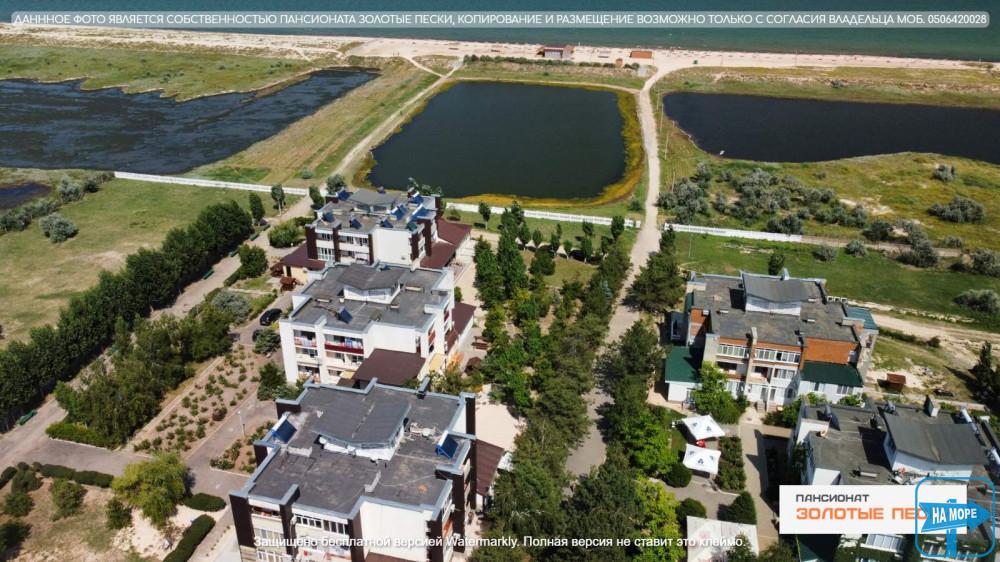 Пансіонат «ЗОЛОТІ ПІСКИ» - знаходиться за адресою: вул. Набережна 8, за 5 км від курортного селища Щасливцеве та 22 км від районного центру м.Геничеськ.
