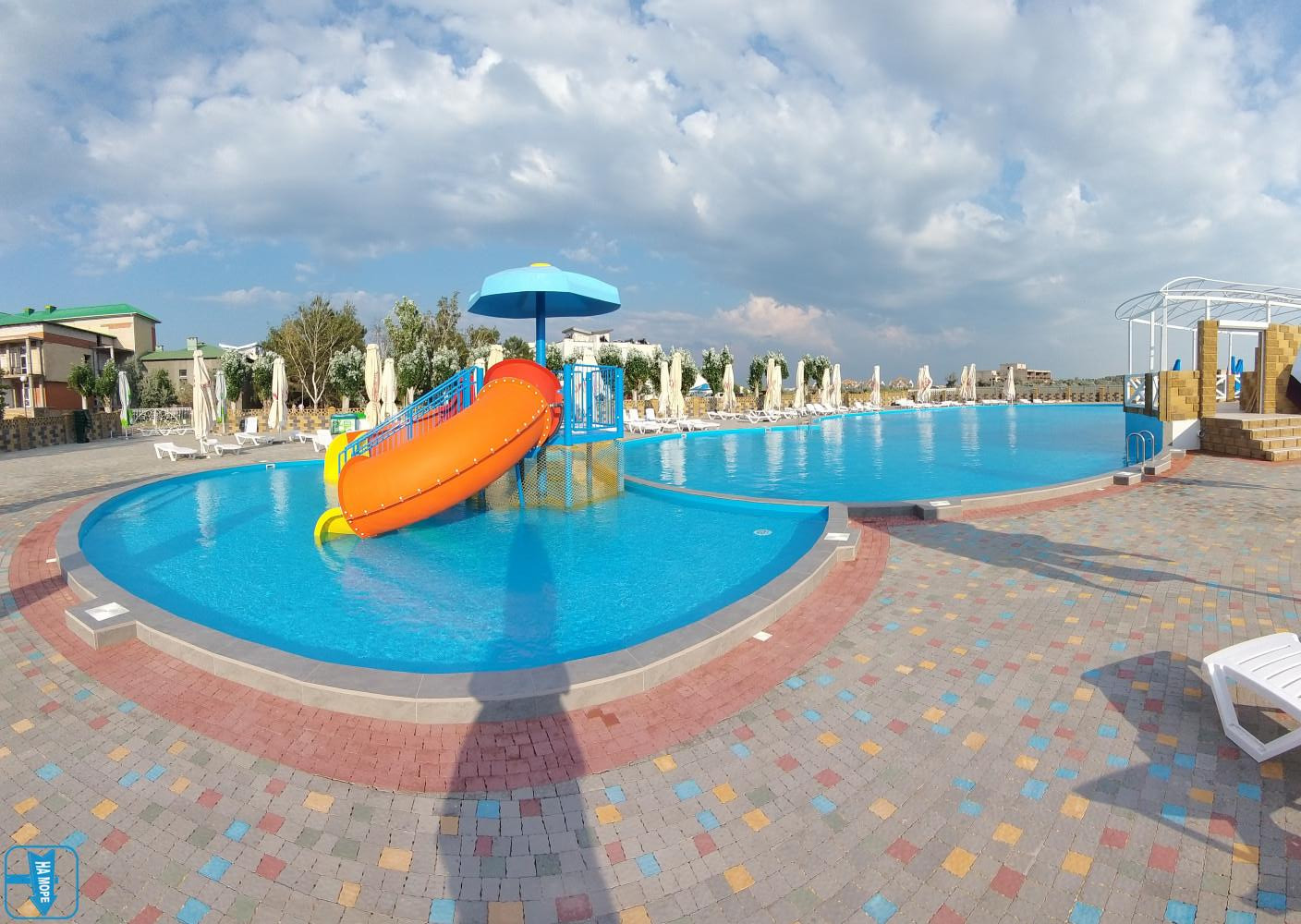 Пансіонат сімейного типу розташований на першій береговій лінії узбережжя Азовського моря (коса Арабатська Стрілка), а також у кроковій доступності до одних з основних лікувальних пам'яток цього регіону: гарячого Термального джерела та Солоного озера.