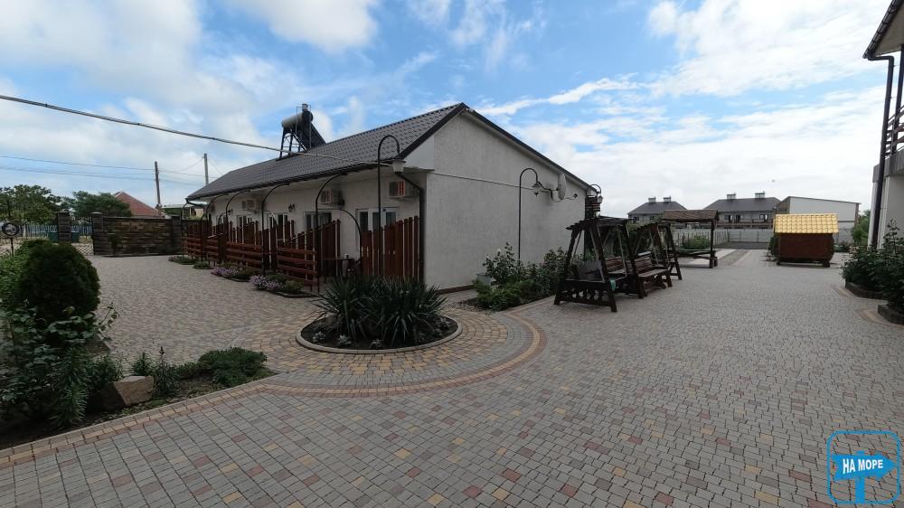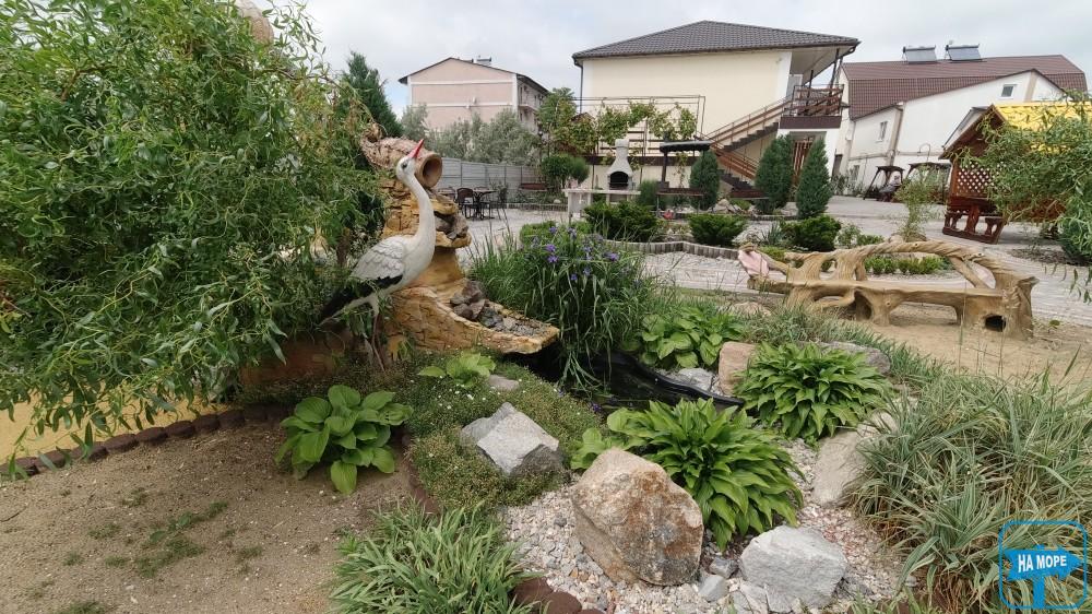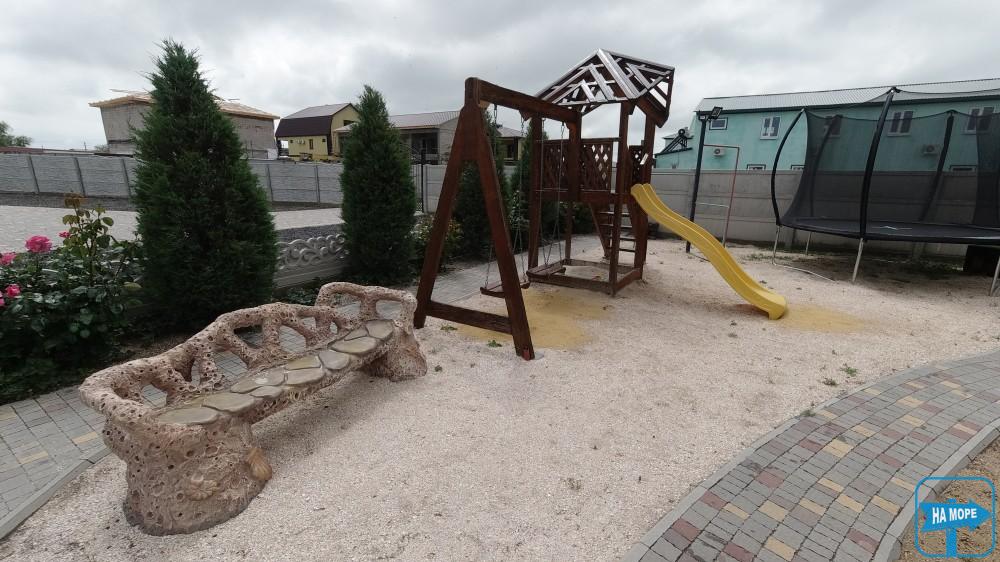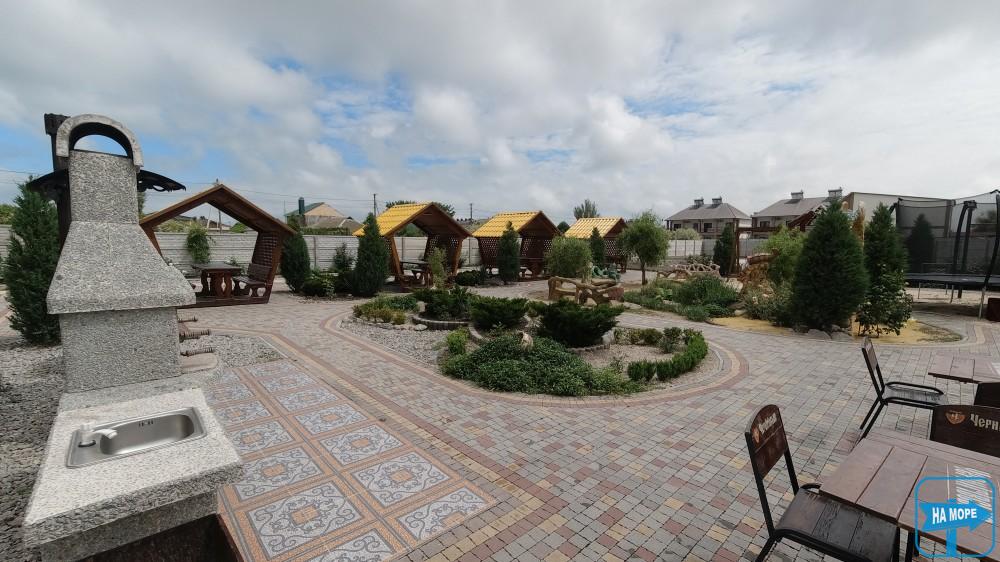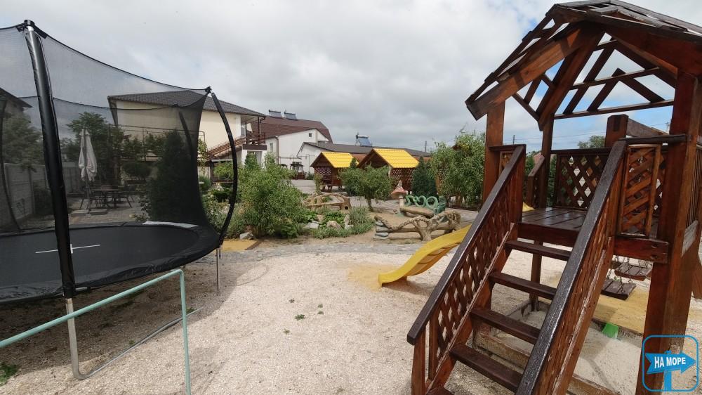 На території розташована автомобільна стоянка на 20-25 місць для паркування, басейн, дитячий майданчик, батут, зона барбекю з альтанками та мангалами.