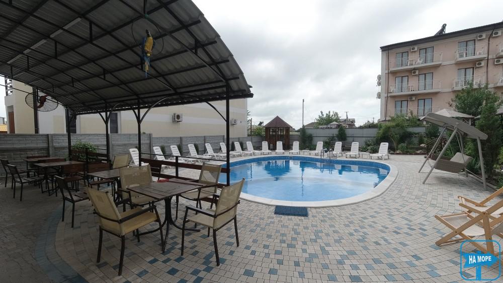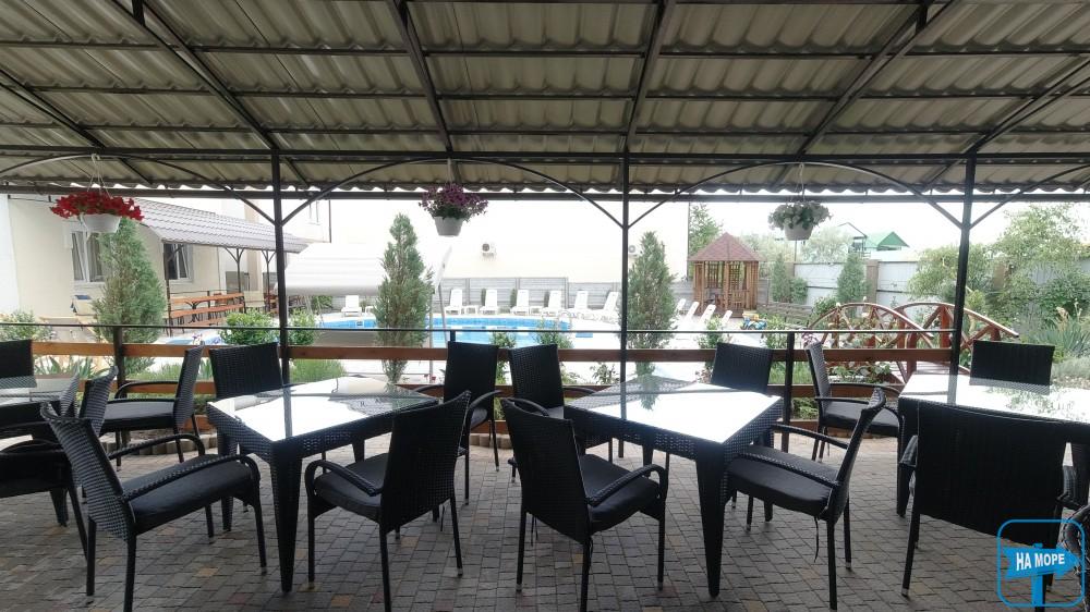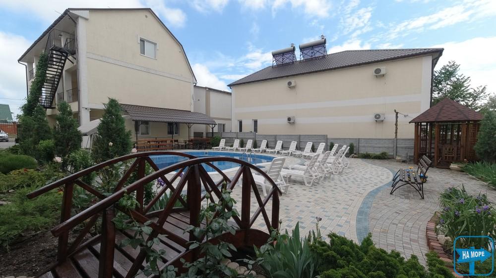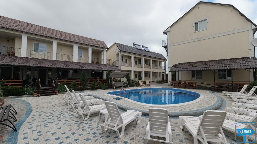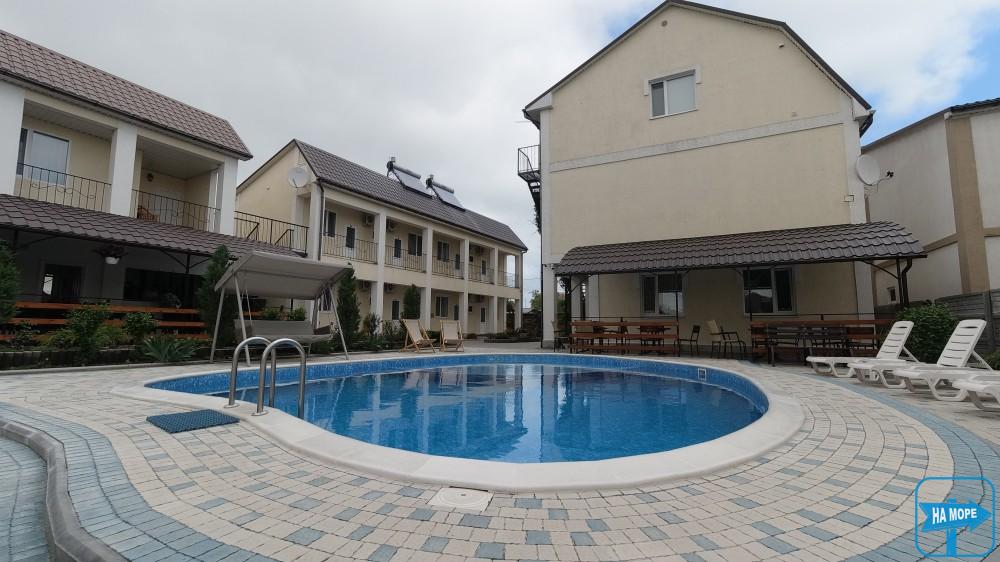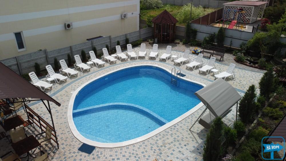 На території розташована автомобільна стоянка на 20-25 місць для паркування, басейн, дитячий майданчик, батут, зона барбекю з альтанками та мангалами.