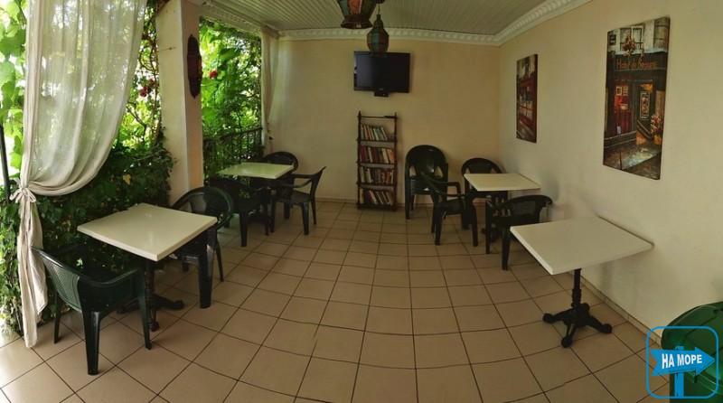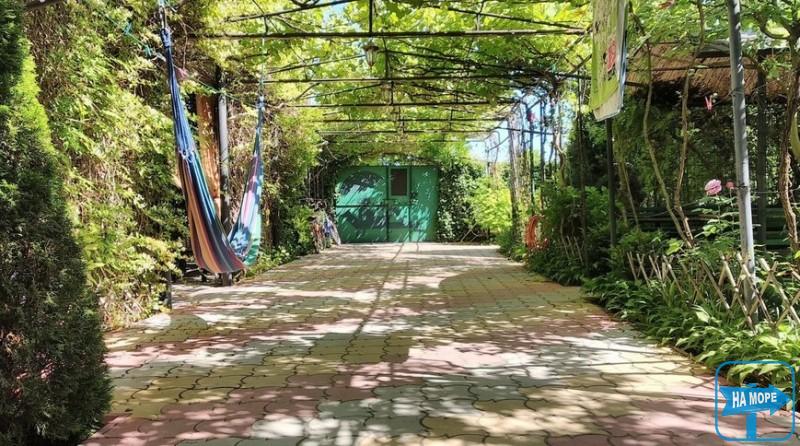 На території автостоянка, мангал, дитячий майданчик, безкоштовний прокат велосипедів та дитячих колясок. Вся територія двору закрита рослинами від прямих сонячних променів. Платні послуги: прання в машині автомат, прокат пляжних парасольок.
