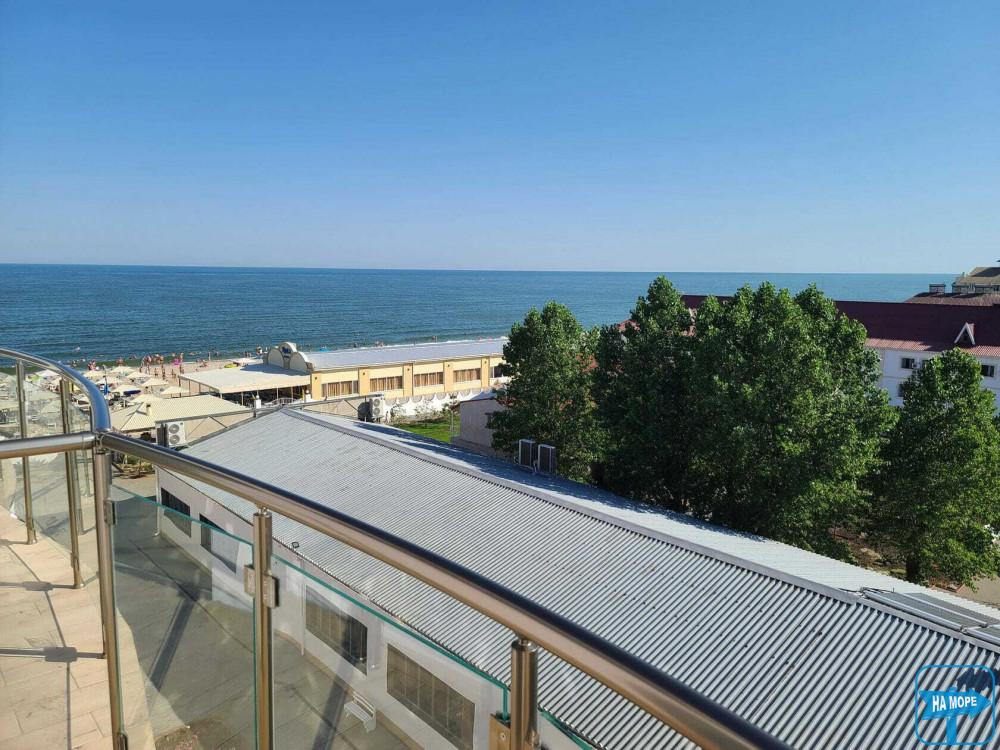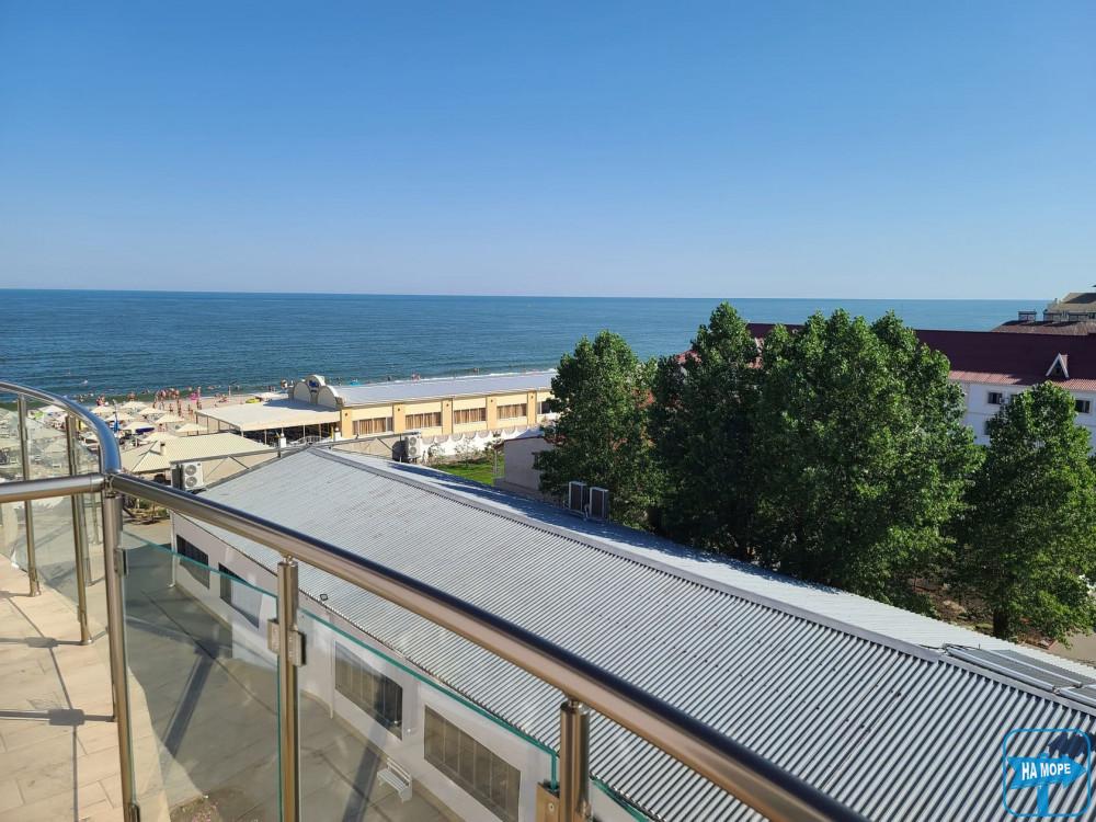 - Балкон, с которого открывается вид на морское побережье, на окнах есть москитные сетки.