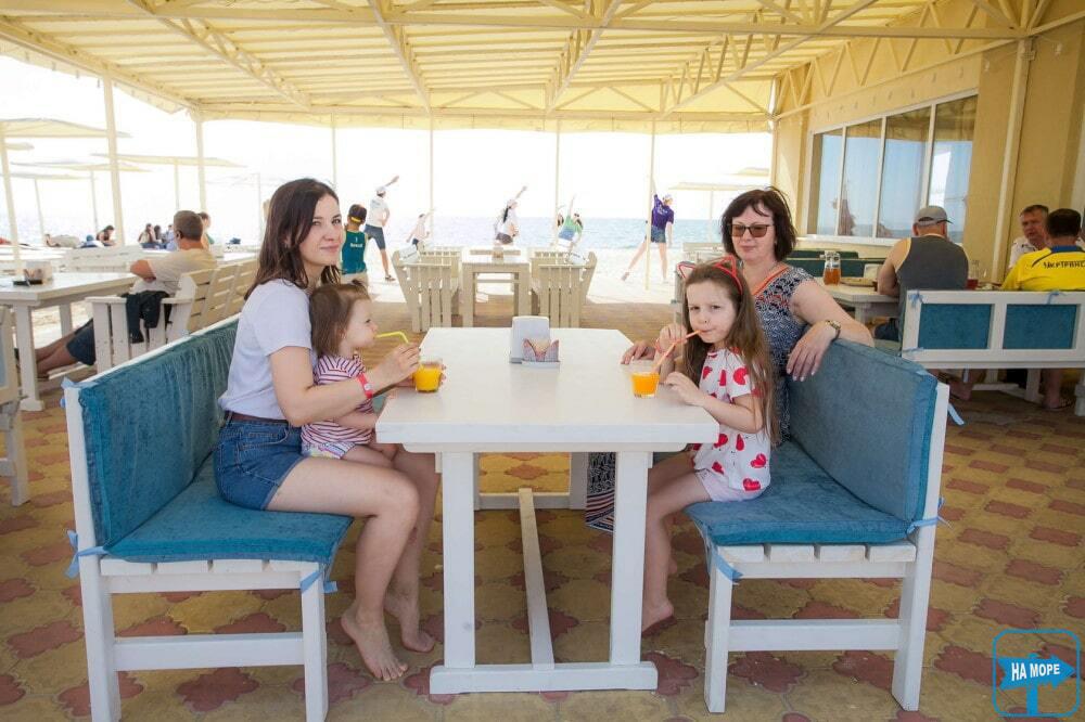 - Можно разместиться на летней террасе или на берегу моря в уютных шезлонгах
