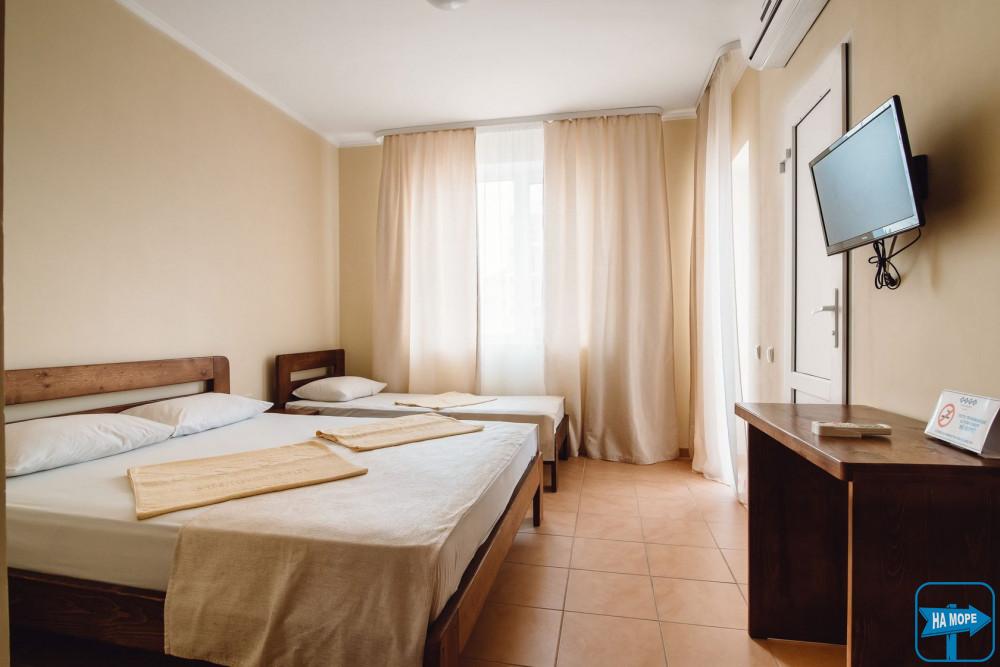 Трехместные номера класса Стандарт+ – это комфортабельные апартаменты со всем необходимым для отдыха. Номер подойдет для компании друзей, пары с детьми.