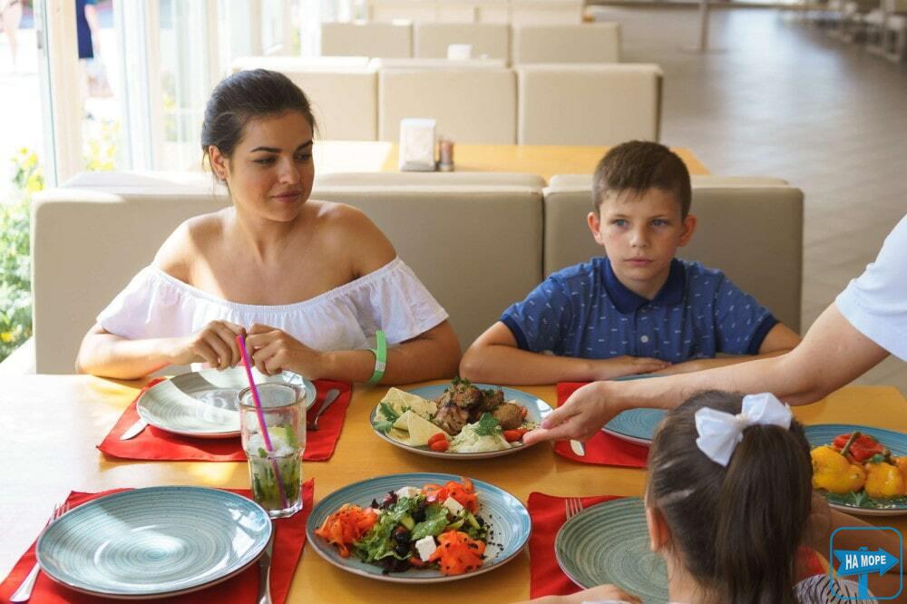 На территории комплекса работает 3 ресторана и lounge-зона на пляже. Заказать питание можно по телефону 0 800 750 300 при бронировании проживания или на рецепции во время заезда. Заказать можно 3-разовое питание или, например, только завтрак и обед.